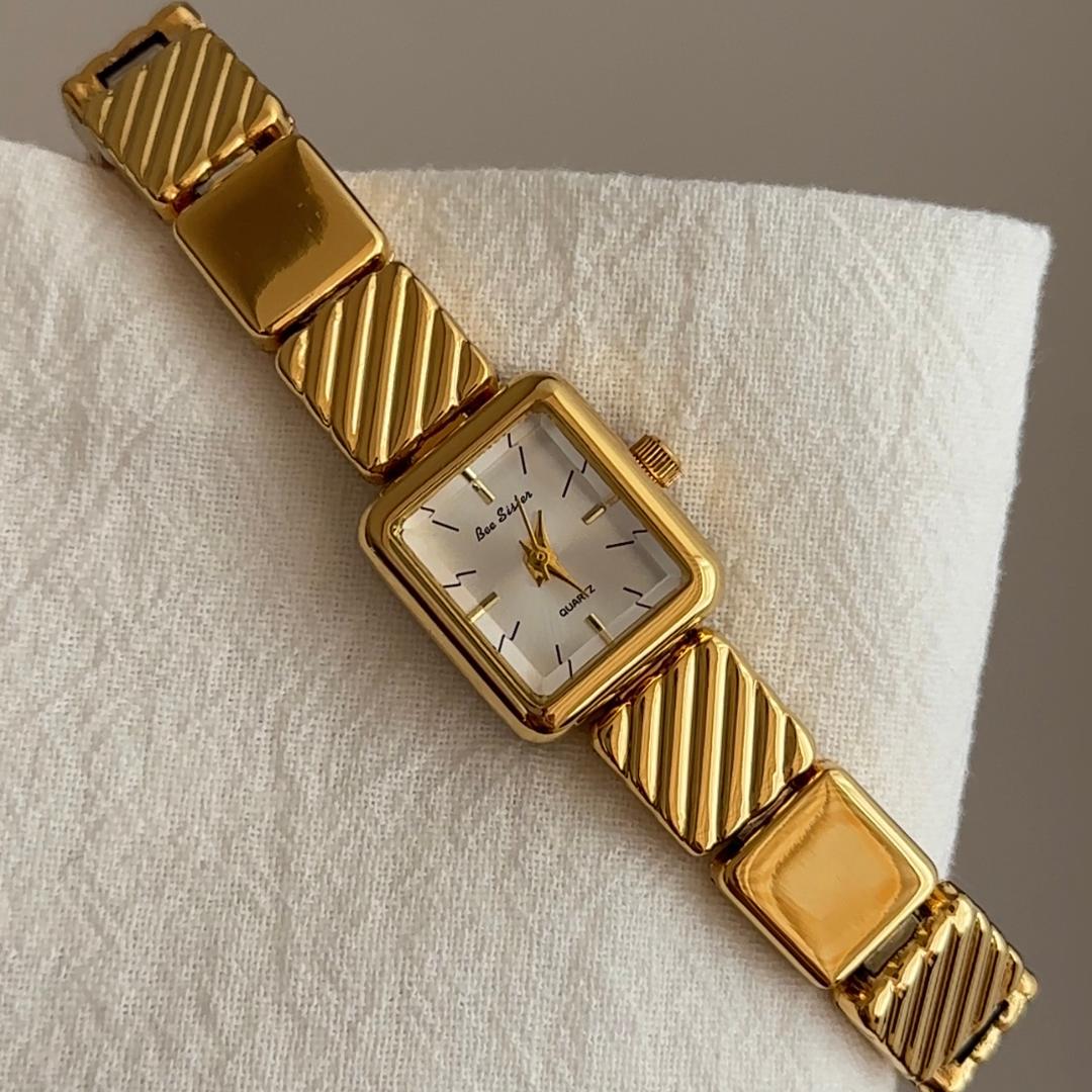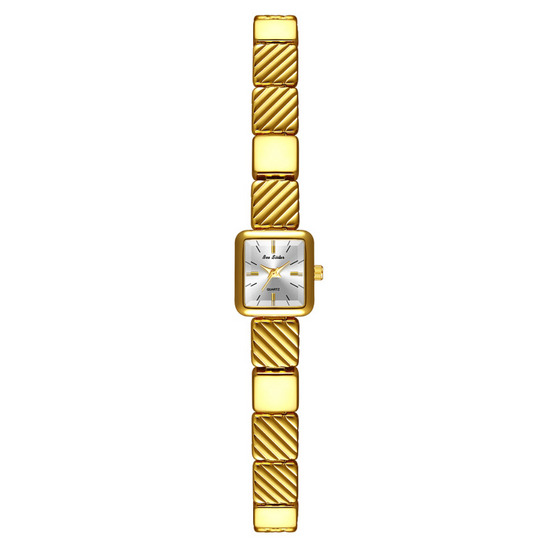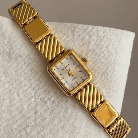 Distinctive and refined, this luxury women’s quartz watch redefines elegance with a unique modular gold bracelet and a sleek white rectangular dial. Its architectural-inspired design combines modern minimalism with timeless sophistication, making it the perfect statement accessory for women who love fashion-forward yet versatile watches.