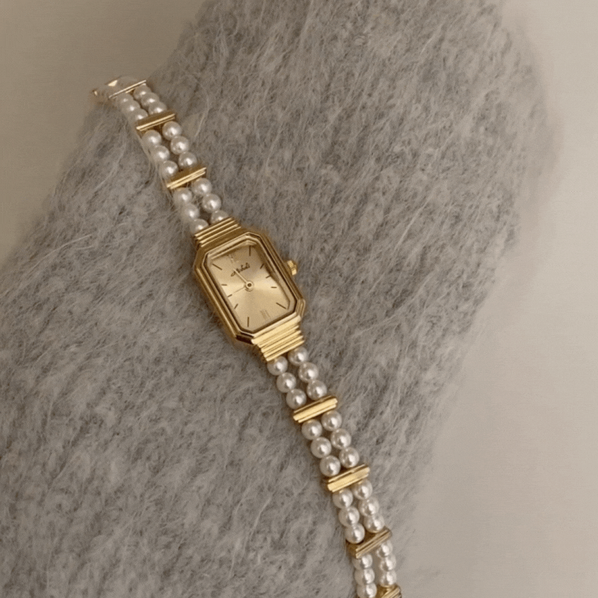 The Parisian Pearl Quartz Watch captures the timeless allure of French elegance. Designed with a delicate strand of luminous pearls and a refined gold rectangular case, this watch doubles as a chic bracelet — blending jewelry artistry with timekeeping precision. The soft sheen of pearls and the warm glow of gold create a graceful harmony, perfect for elevating any outfit from day to night.