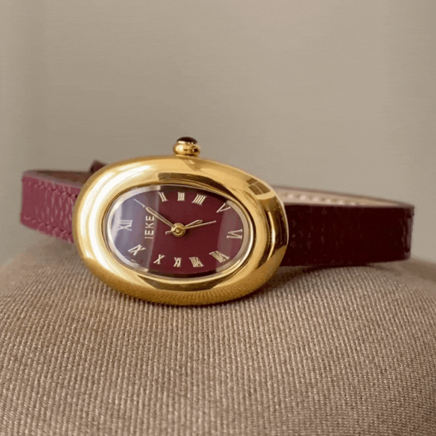 The Scarlet Luxe Quartz Watch blends timeless elegance with a bold, modern spirit. Featuring a glossy red dial set in a polished gold oval “bathtub” case and paired with a matching red genuine leather strap, this watch radiates confidence and sophistication. A perfect accessory for women who love vibrant, classic style with a luxurious twist.