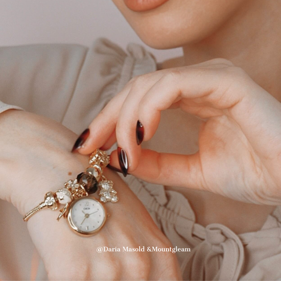 Představujeme Hodinky s medvědem a letadlem, hravé a zároveň sofistikované spojení šarmu a elegance. Tyto hodinky s unikátním designem zlatého náramku zdobeného roztomilým medvídkem a přívěskem s letadlem jsou doplněny třpytivými zirkonovými akcenty, které jim dodávají nádech lesku. Kombinace rozmarnosti a luxusu vytváří výrazný vzhled, ideální pro ty, kteří rádi vyniknou zábavným a módním dojmem. Tyto hodinky, dokonalá směs mladistvého vzhledu a elegance, jsou určeny pro ty s hravou povahou a smyslem pro stylové detaily.