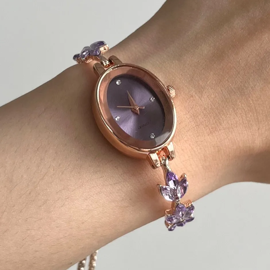 Amethyst Mermaid: Purple Crystal Oval Dial Bracelet Watch
