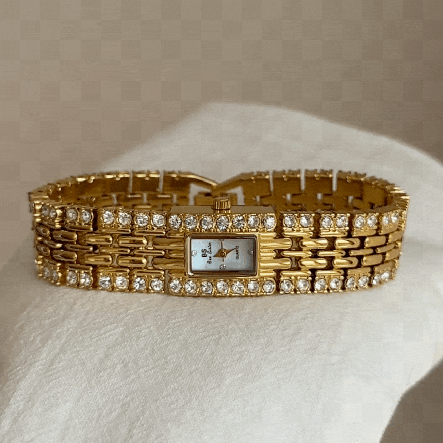 Lumière Rectangular - White Dial Diamond Gold Quartz Watch