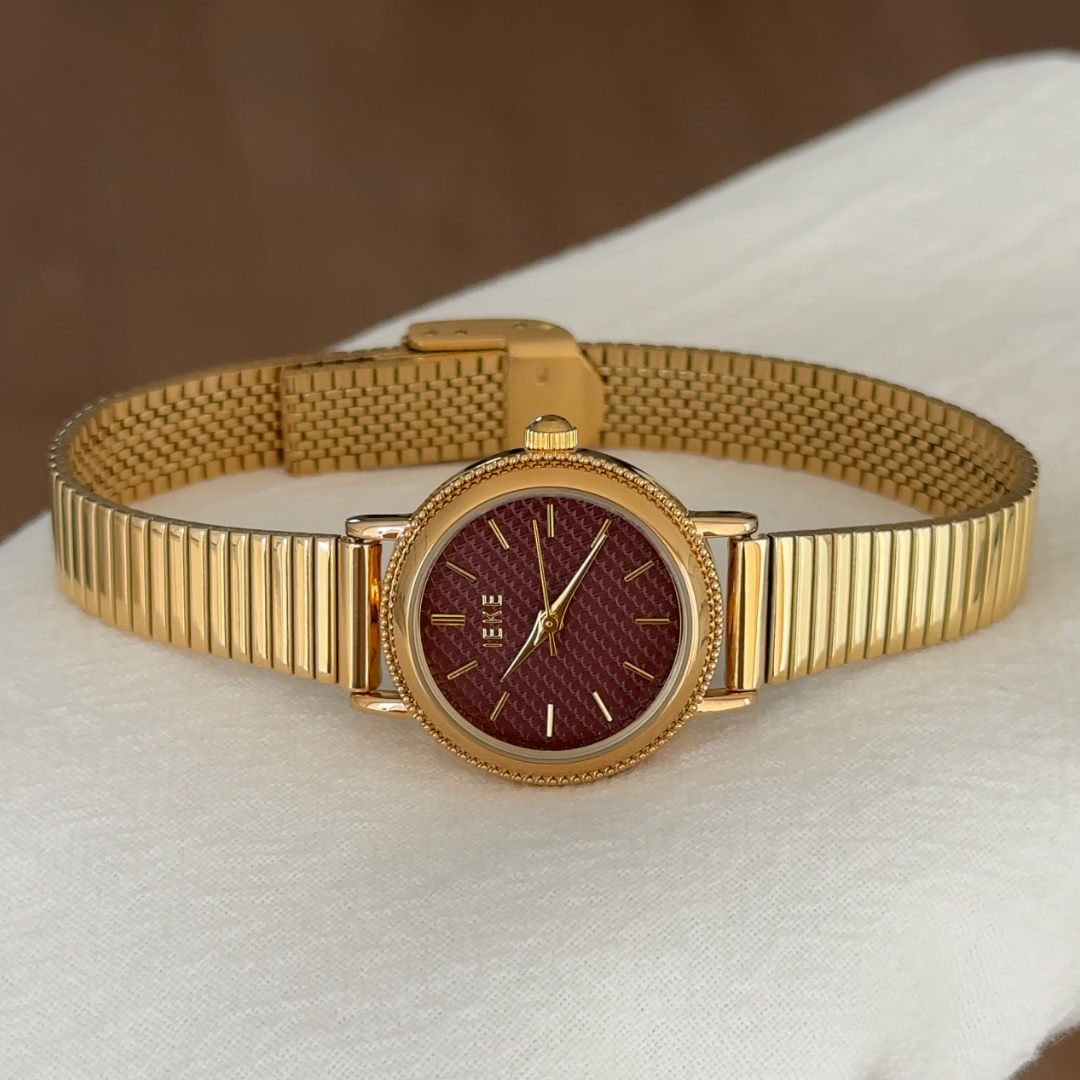 The Aurelia Classic Quartz Watch is a timeless expression of style and sophistication. Featuring a radiant gold bamboo-style strap and a striking red round dial, this watch blends classic elegance with a modern fashion edge. Designed for women who appreciate bold yet refined accessories, it’s the perfect piece to elevate both everyday looks and evening outfits.
