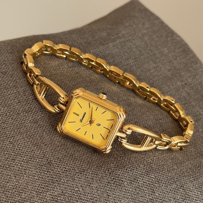The Gold Bracelet Watch blends timeless elegance with a touch of modern sophistication. Featuring a slim rectangular dial and a polished gold bracelet design, this piece shines like fine jewelry while keeping perfect time. Ideal for women who appreciate refined simplicity and quiet luxury in every detail.