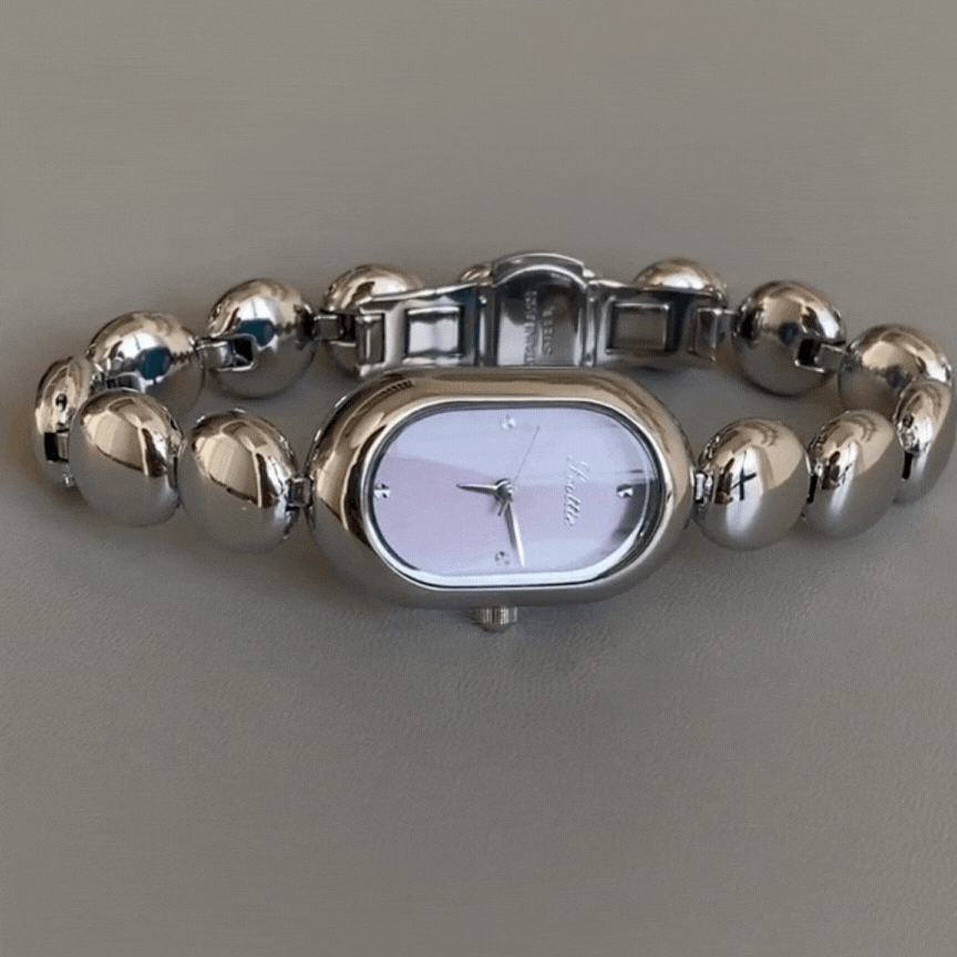 Beaded Bracelet Quartz Watch with Purple Oval Dial – Elegant & Unique