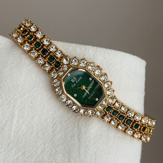 Shine with elegance in this light luxury women’s quartz watch, designed with a dazzling green crystal-encrusted bracelet and a unique octagon-shaped dial. Its jewelry-inspired look makes it more than just a timepiece—it’s a statement accessory for women who appreciate niche, fashion-forward design.