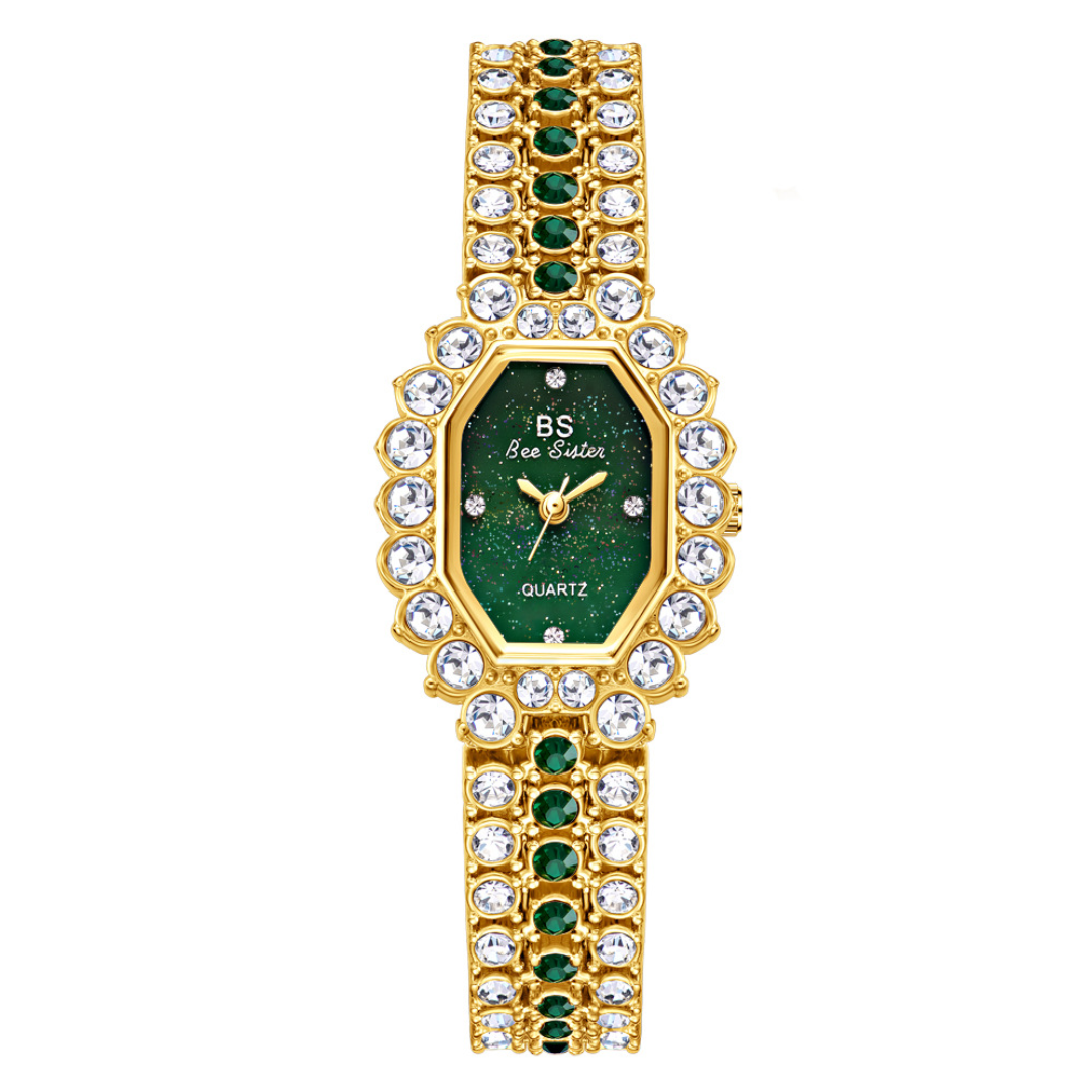 Perfect for special occasions, evening wear, or as a luxury gift, this green diamond-style bracelet watch combines high-end style with everyday practicality.