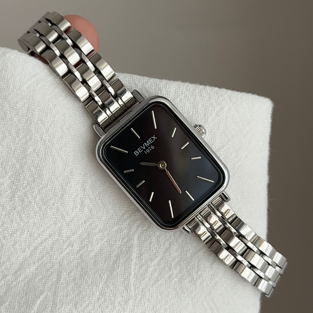 Ideal for women who value simplicity and sophistication, this silver steel black rectangle quartz watch is perfect for office, casual, or evening occasions.