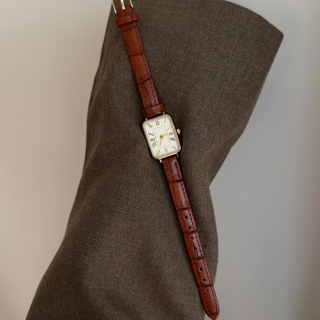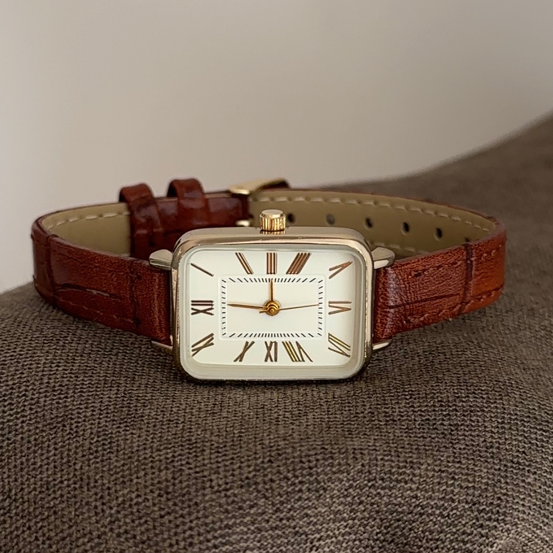 The Roman Elegance Quartz Watch captures the essence of vintage sophistication. Designed with a polished gold rectangular case, a crisp white dial adorned with Roman numerals, and a rich brown genuine leather strap, this timepiece exudes timeless charm. Perfect for women who appreciate understated luxury and classic European style, it pairs beautifully with both casual and refined looks.