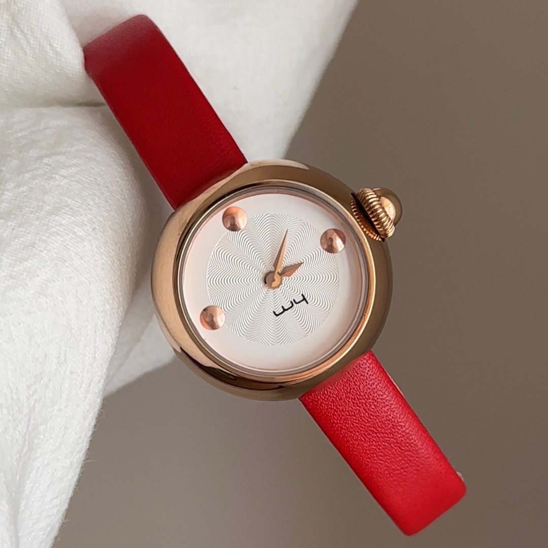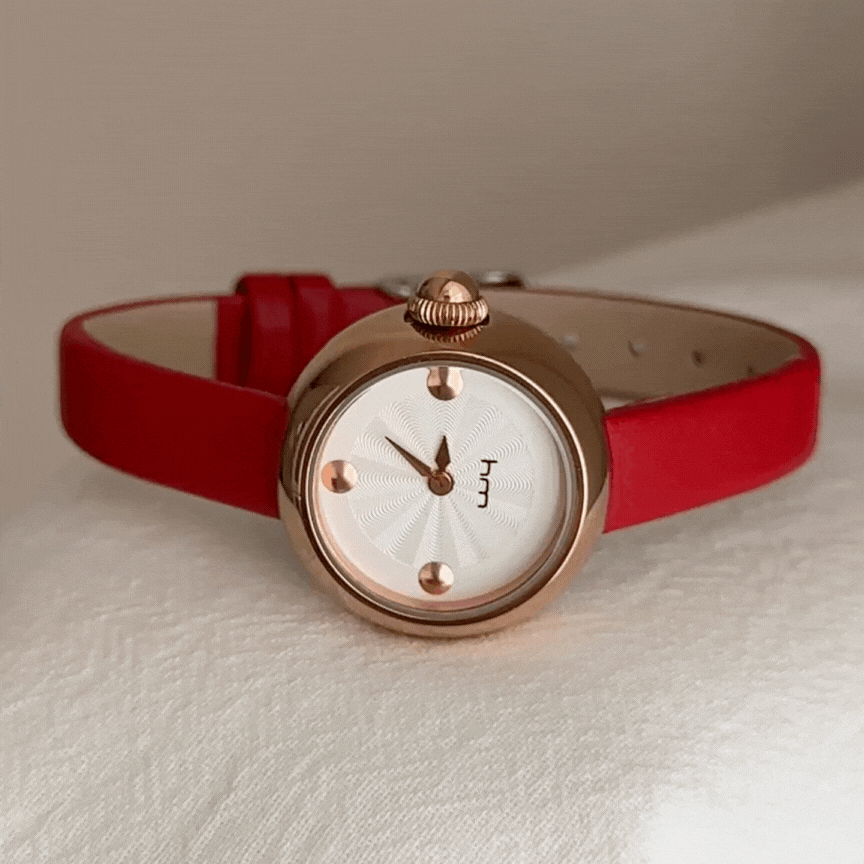 Rosélia Grace – Red Leather Strap Rose Gold Case White Round Dial Women’s Quartz Watch