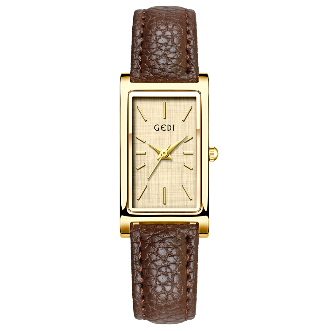 Timeless and elegant, this vintage-inspired women’s quartz watch features a sleek rectangular gold-tone case paired with a refined brown genuine leather strap. Its retro charm and minimalist design make it a versatile accessory for women who love classic style.