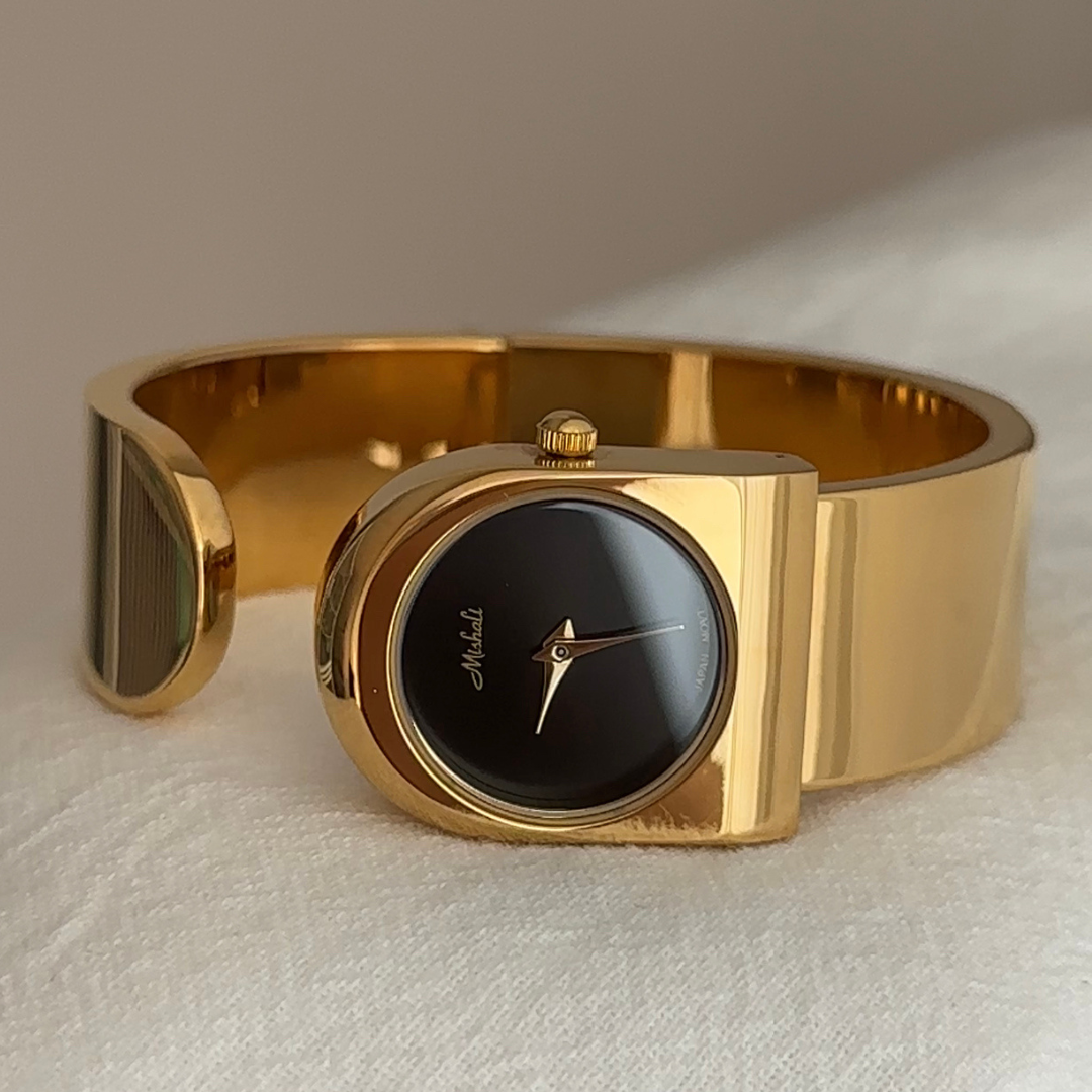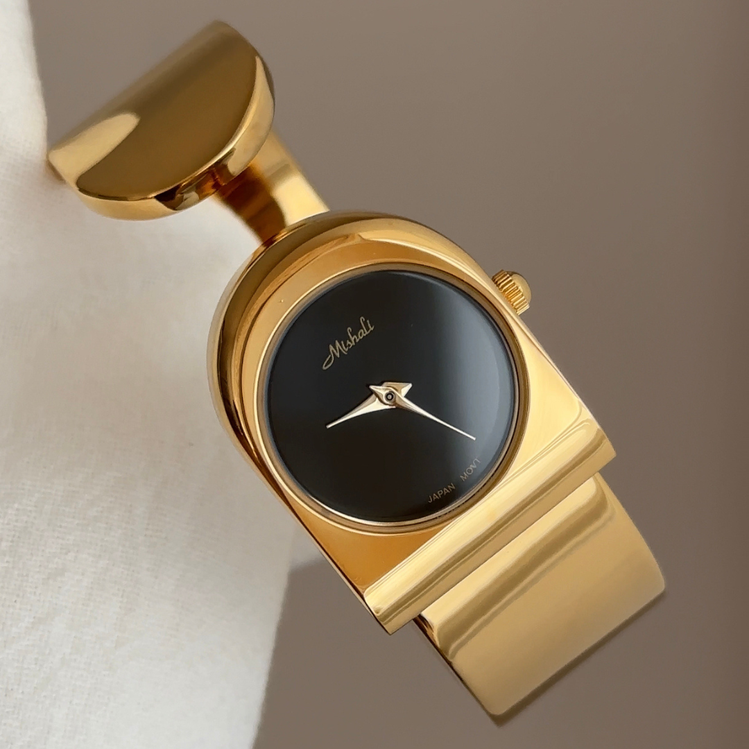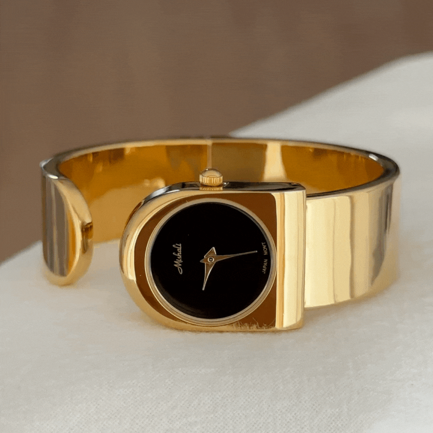 The Vintage Vogue Quartz Watch combines bold retro charm with modern sophistication. Featuring a polished gold wide cuff bracelet and a sleek black round dial, this timepiece makes a powerful yet elegant statement. Designed for women who appreciate standout accessories, it’s the perfect watch to elevate both everyday style and evening looks.