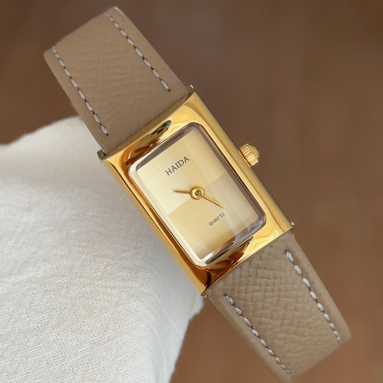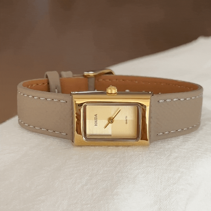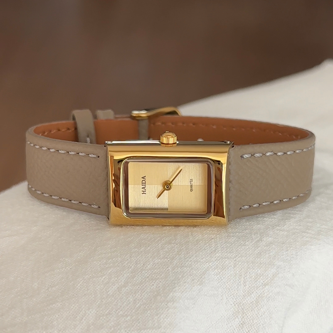 Women’s Quartz Watch – Elephant Gray Leather Strap with Rectangular Gold Case