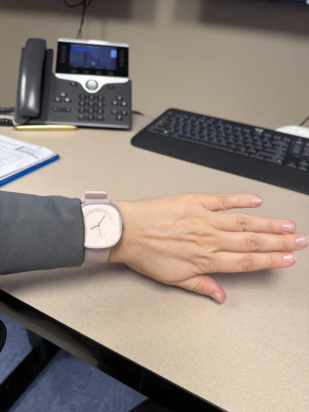 Looks even nicer in real life than in the photo. I have a really small wrist and can use the smallest setting on the wrist band without getting another hole cut - which is great.