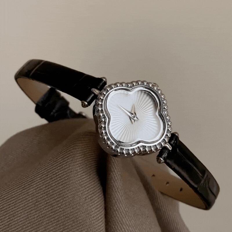 Αυτό το εκλεπτυσμένο ρολόι quartz διαθέτει ένα ασημένιο καντράν σε σχήμα τριφυλλιού σε συνδυασμό με ένα κομψό μαύρο δερμάτινο λουράκι, προσφέροντας διαχρονική κομψότητα με μια μοντέρνα πινελιά. Σχεδιασμένο για αβίαστο στυλ, εξασφαλίζει ακριβής χρονομέτρηση και ευέλικτη εφαρμογή—ιδανική τόσο για την εργασία όσο και για ειδικές περιστάσεις.