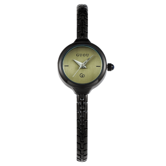 Black Women's Watch – Dainty Mini Round Green Dial with Leather Strap | Ivy