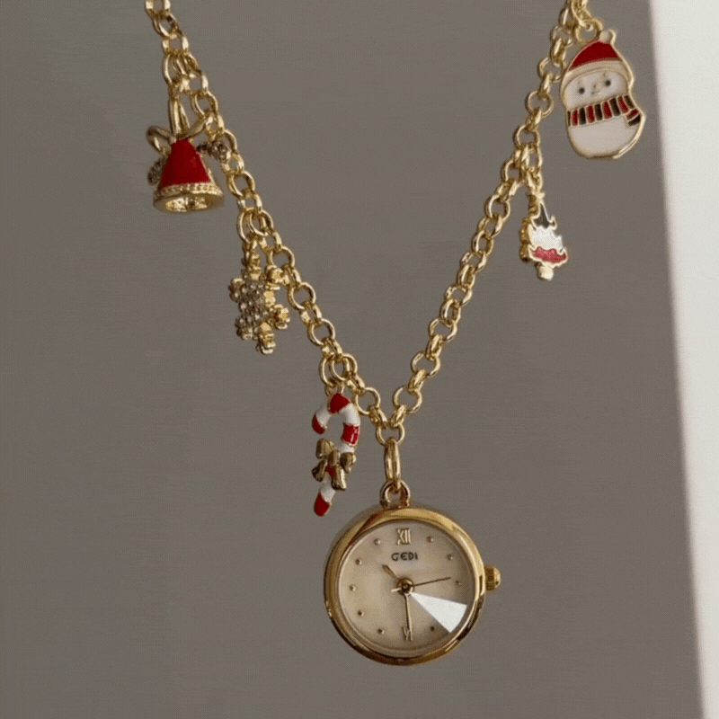 Celebrate the season with this elegant Christmas bracelet-style women’s quartz watch, featuring a polished gold-tone round dial and festive charm. The bracelet-inspired design adds a delicate, feminine touch, while the quartz movement ensures accurate daily timekeeping. Perfect as a thoughtful holiday gift or a stylish accessory for Christmas outfits.