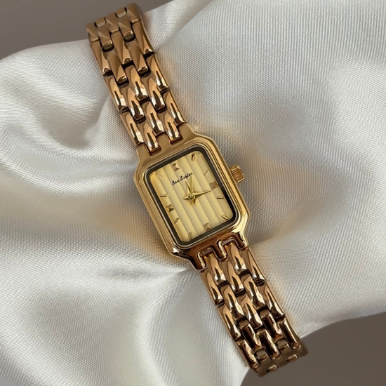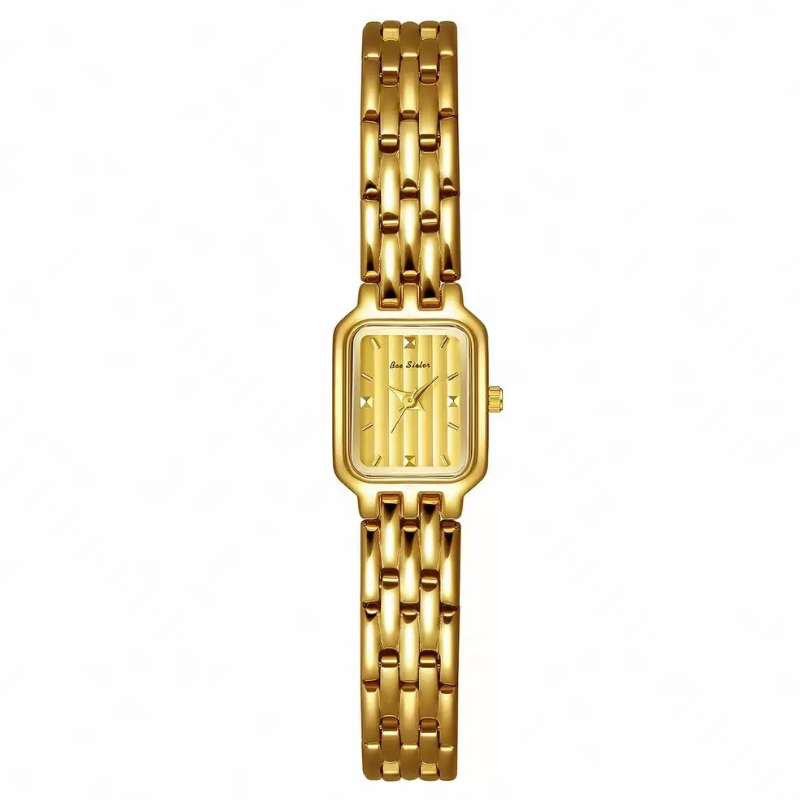 Classic Modern Gold Rectangular Dial Watch - Stainless Steel Quartz Bracelet