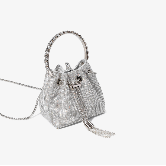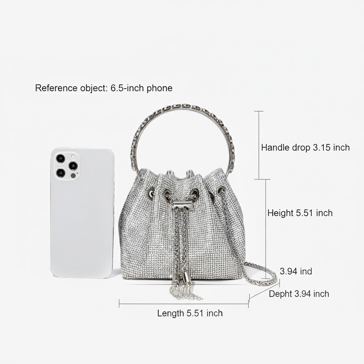 Turn heads with the Crystal Embellished Bucket Bag, a sparkling statement piece that blends elegance and edge. Covered in dazzling rhinestones and finished with a sleek metal handle, it adds instant glamour to any outfit. Compact yet practical, it’s perfect for nights out, special events, or when you simply want to shine brighter than the crowd.