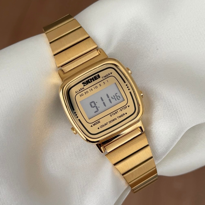 Digital Gold Square Electronic Watch with Stainless Steel Bracelet - Modern Tech