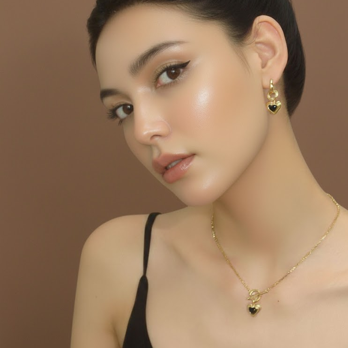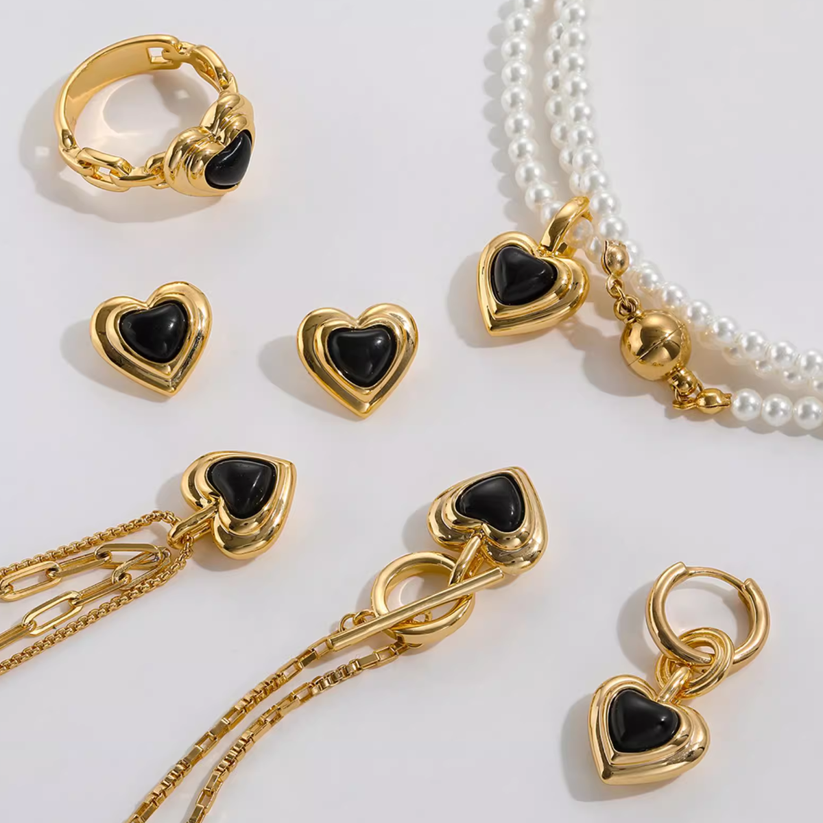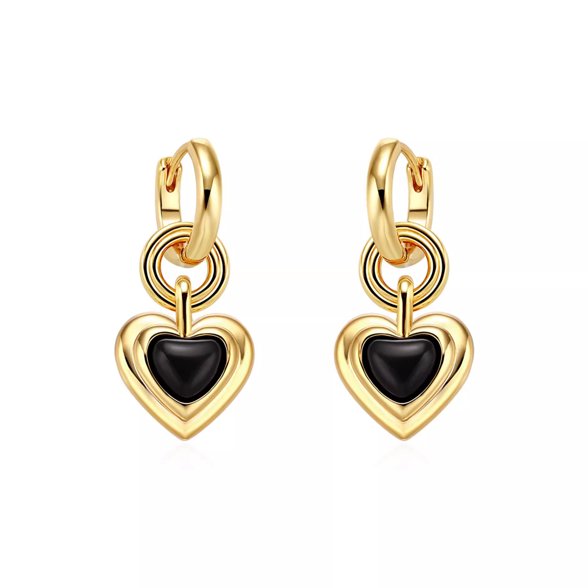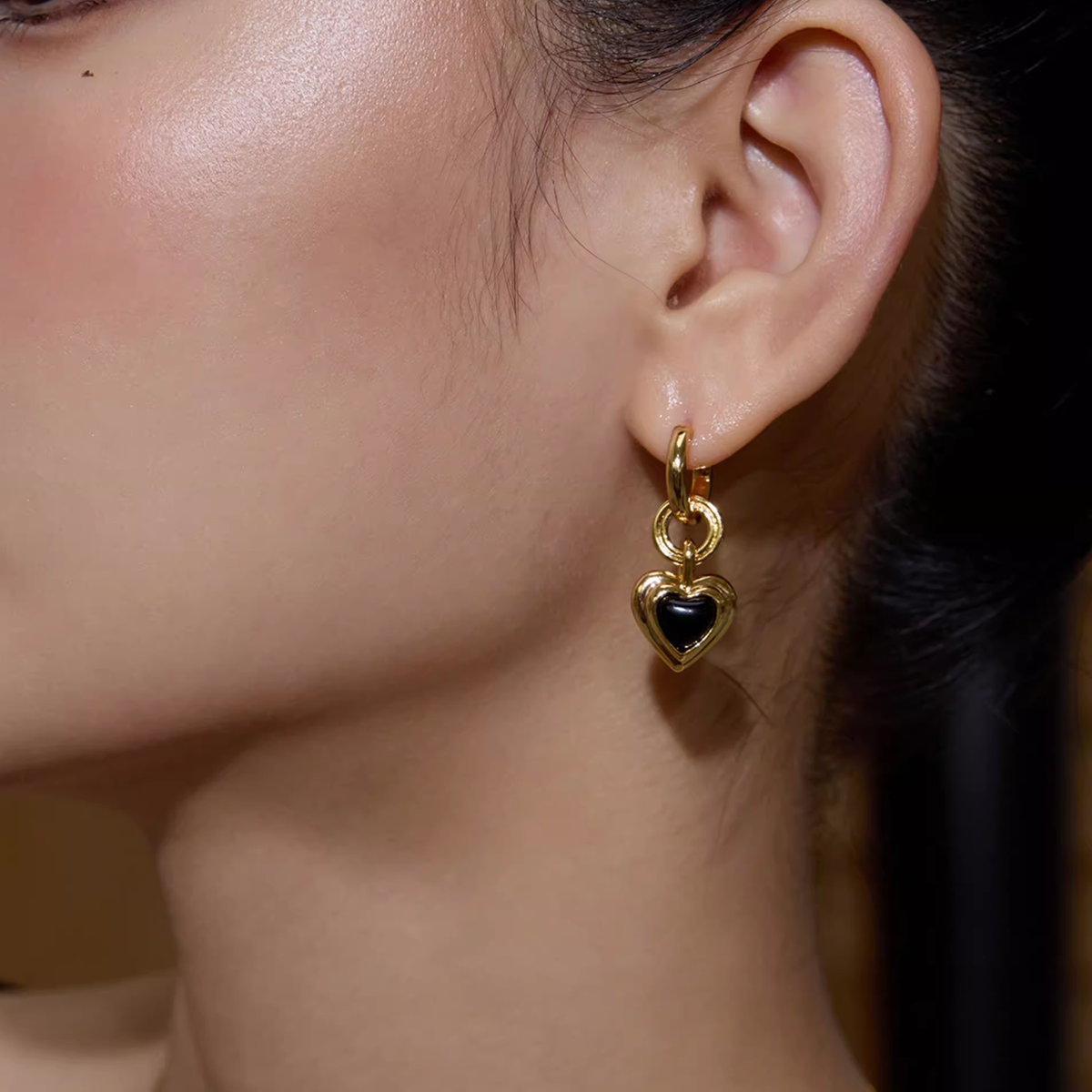 For a touch of timeless elegance, the Double-Layer Detachable Black Onyx Heart Earrings blend vintage charm with modern sophistication. The detachable design lets you switch between minimal hoops or full onyx heart drops — perfect for any occasi