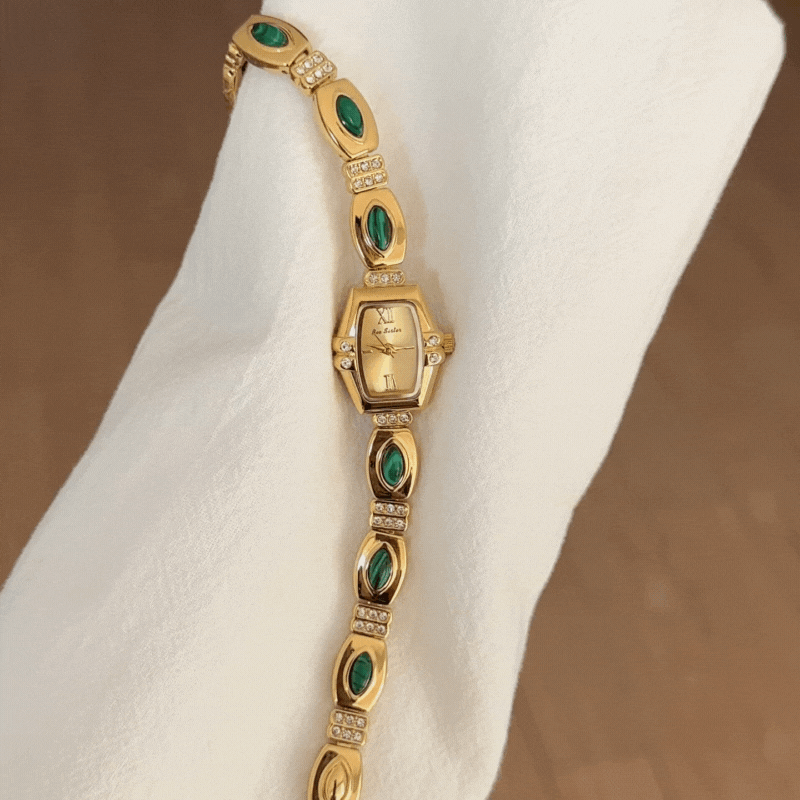 Discover enduring elegance with our vintage-inspired quartz watch. Crafted with a luxurious gold-tone case and bracelet, it features captivating peacock gemstones that shimmer with every move. Designed to elevate any outfit, this timepiece masterfully combines timeless retro appeal with trusted modern reliability.