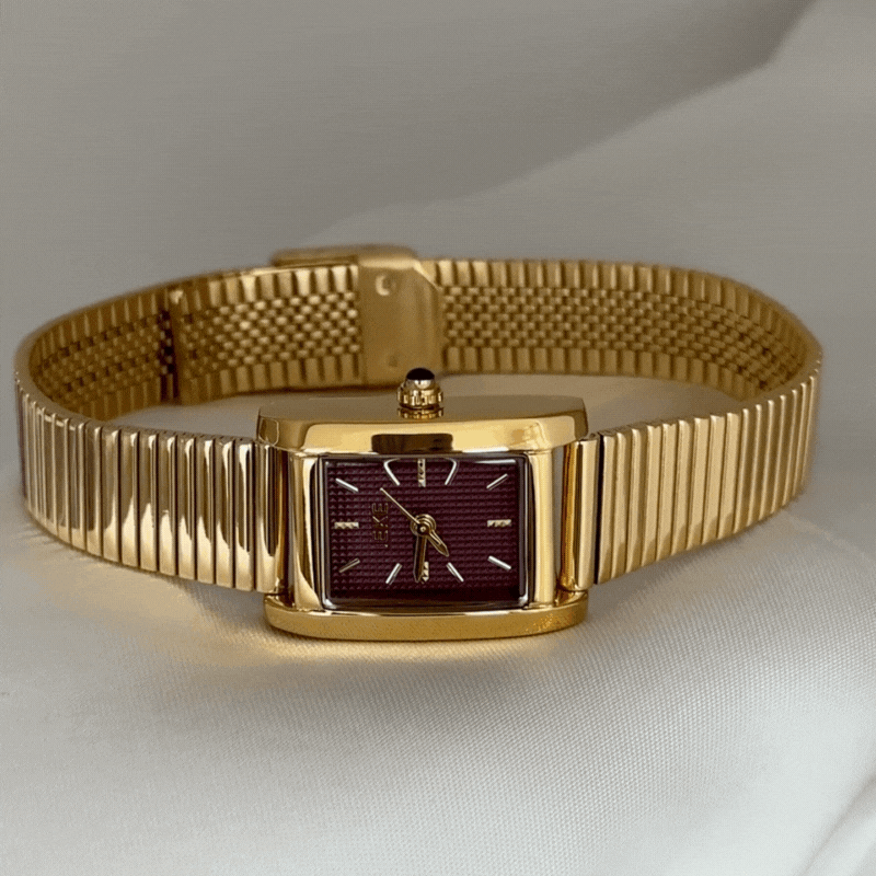 The striking combination of red and gold creates a versatile accessory suitable for professional environments and special occasions alike. Transitioning effortlessly from day to evening, this timepiece serves as both a functional watch and a fashion accent. Perfect as a gift or personal indulgence, it embodies timeless elegance through refined craftsmanship and balanced design.