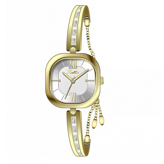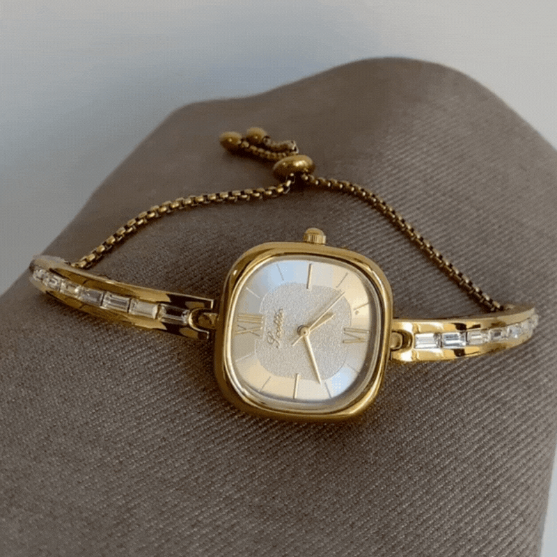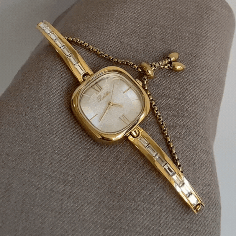 This elegant women’s quartz watch features a gold-tone square dial, diamond-accent details, and a refined bracelet-style design. Its minimalist shape and polished finish create a timeless, feminine look suitable for both daily wear and special occasions. Powered by a reliable quartz movement, it delivers accuracy and effortless sophistication in every moment.