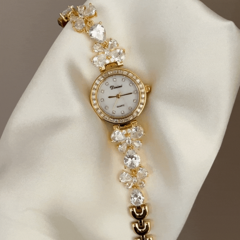 Crafted for the graceful, versatile woman, this watch combines poetic femininity with everyday elegance. It features a white sunburst dial in a gold case and a signature butterfly-inspired gold alloy bracelet that drapes like jewelry. Reliable quartz movement ensures accurate timekeeping, while slim hands offer clear readability. With an adjustable clasp, scratch resistance, and water resistance, it retains its radiant finish. Effortlessly transitioning from day to evening, it serves as both a functional timepiece and a refined style statement—ideal as a meaningful gift or a personal indulgence that blends artistry with wearable charm.