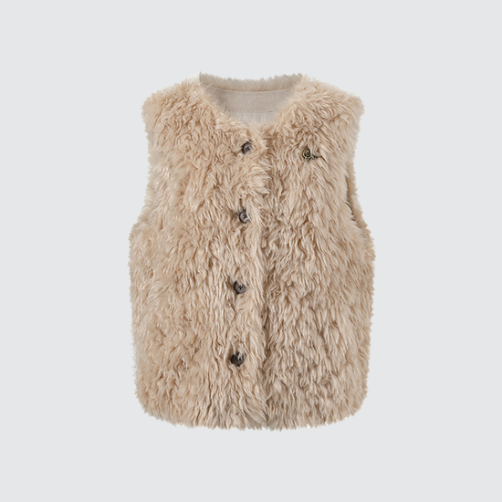 - Design Elements: Plush faux-shearling texture, single-breasted buttons, roomy armholes, relaxed drop-shoulder