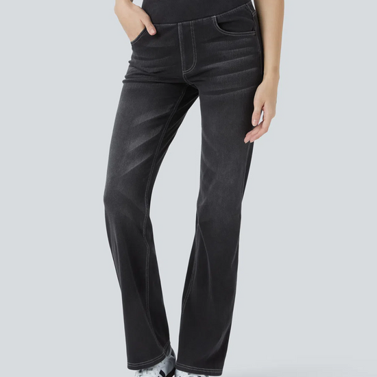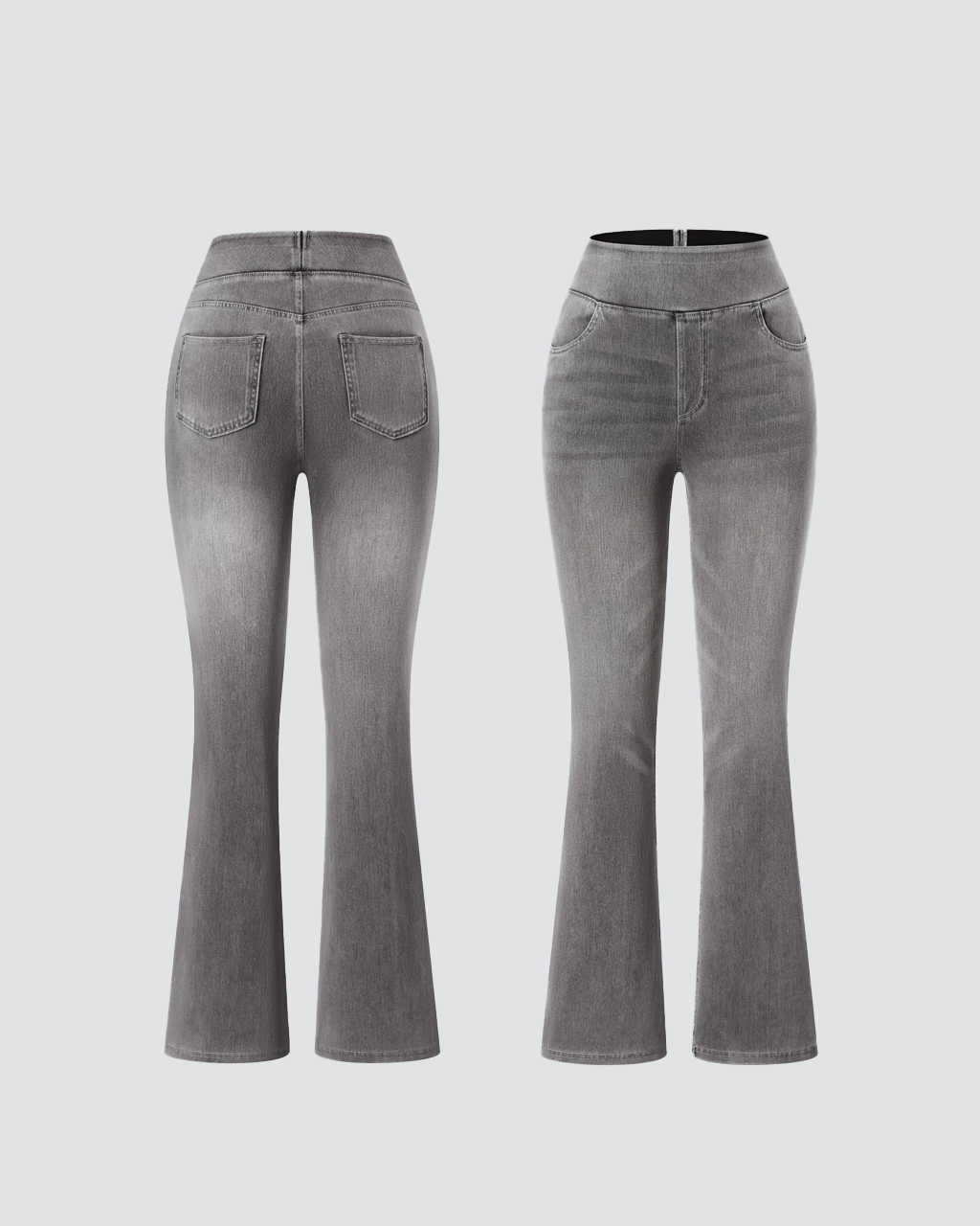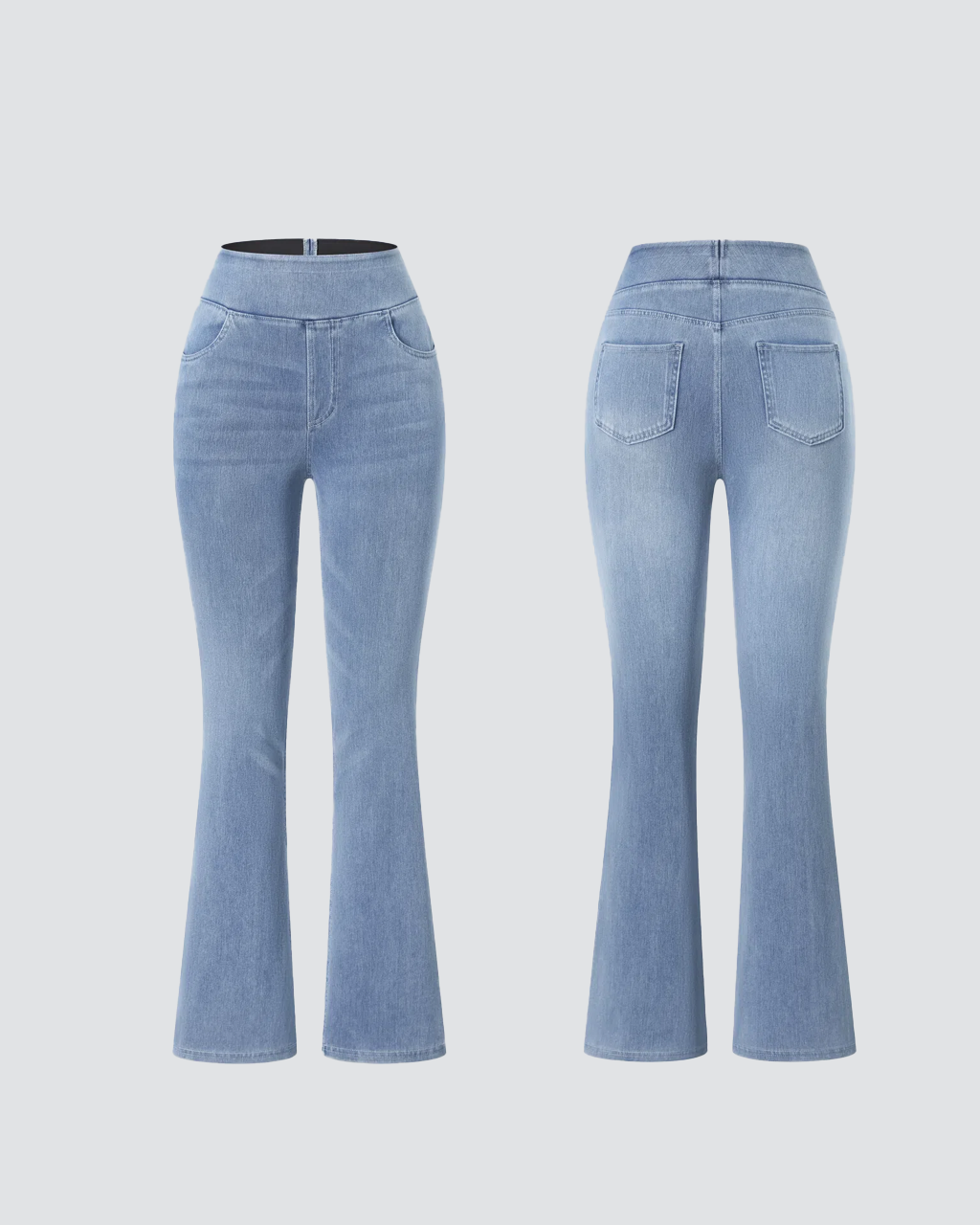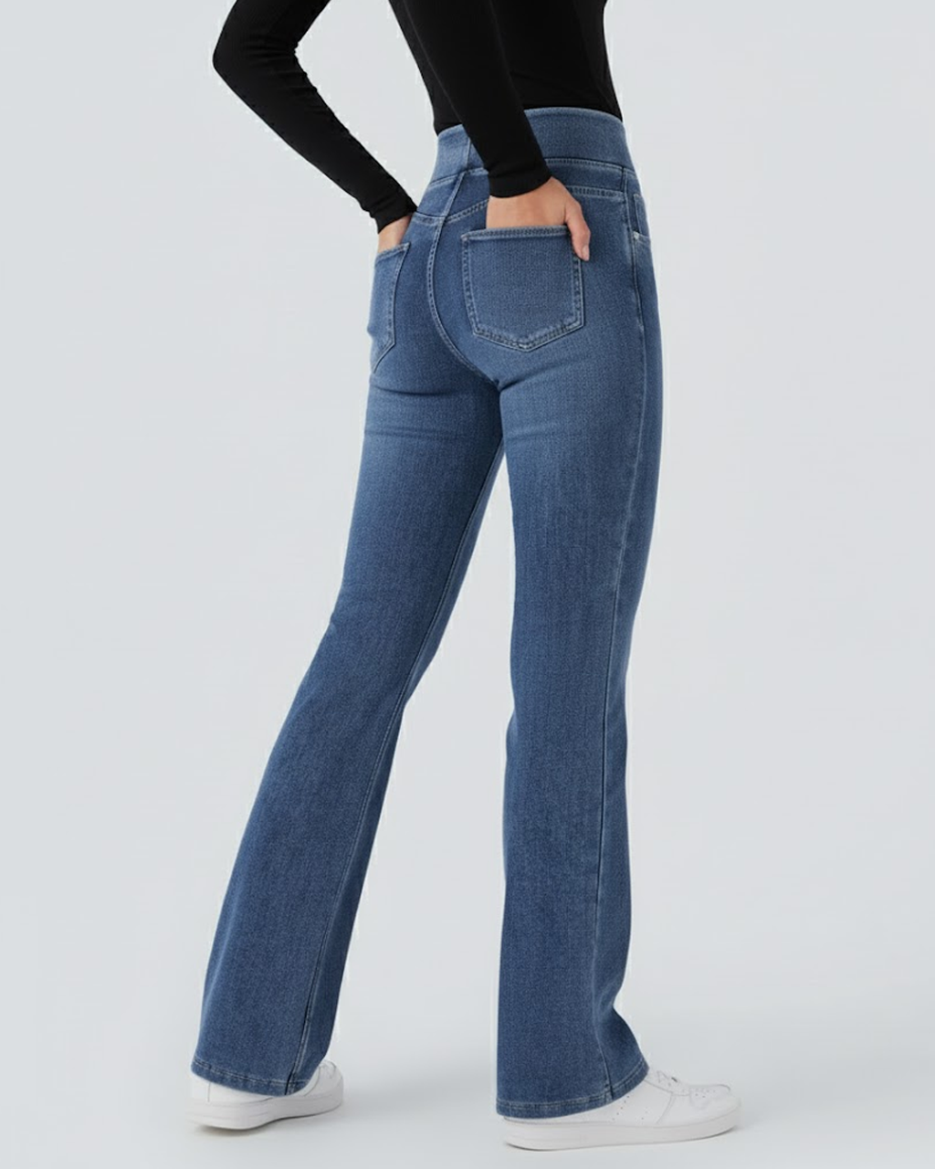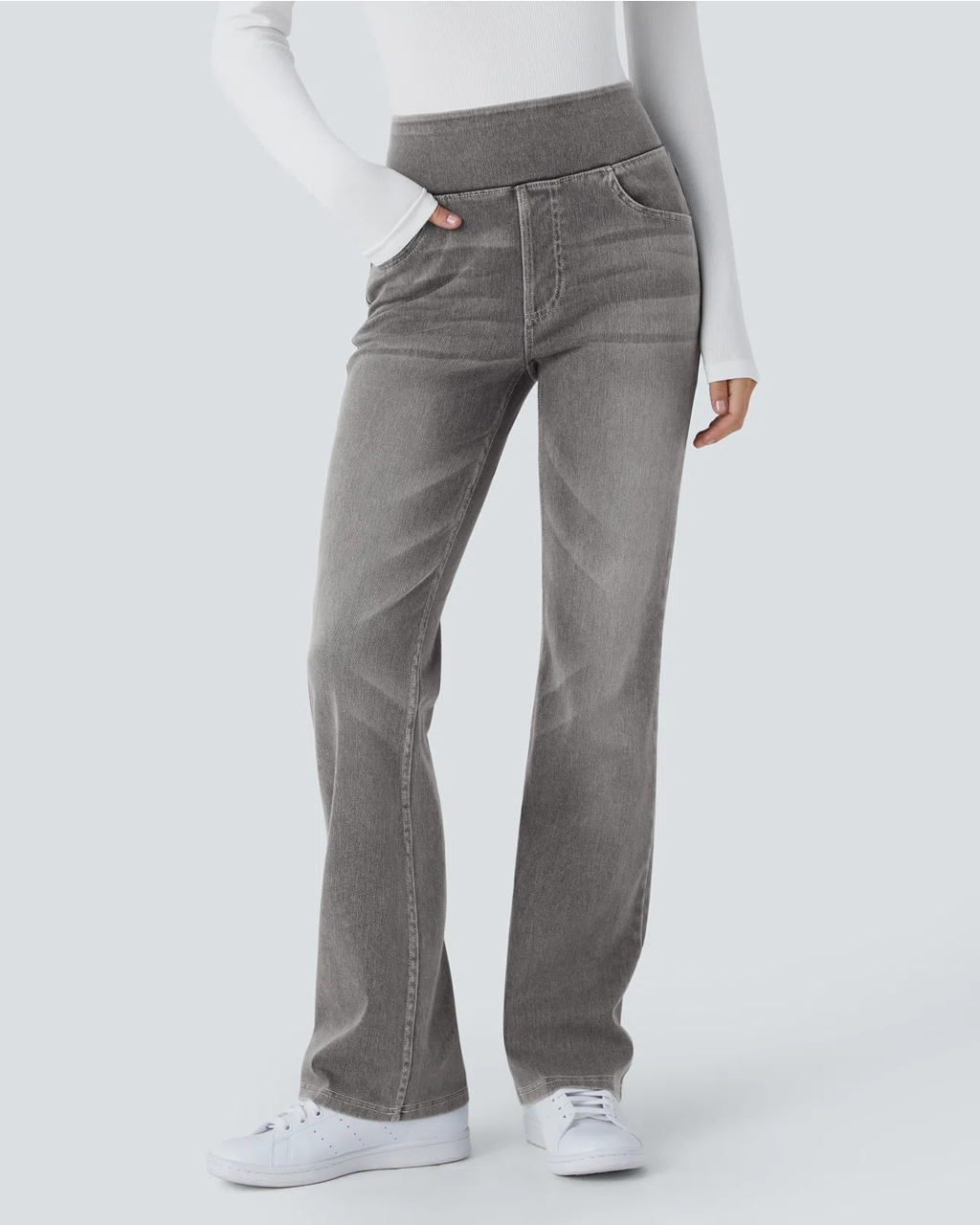 High Waisted Stretch Pockets Washed Casual Bootcut