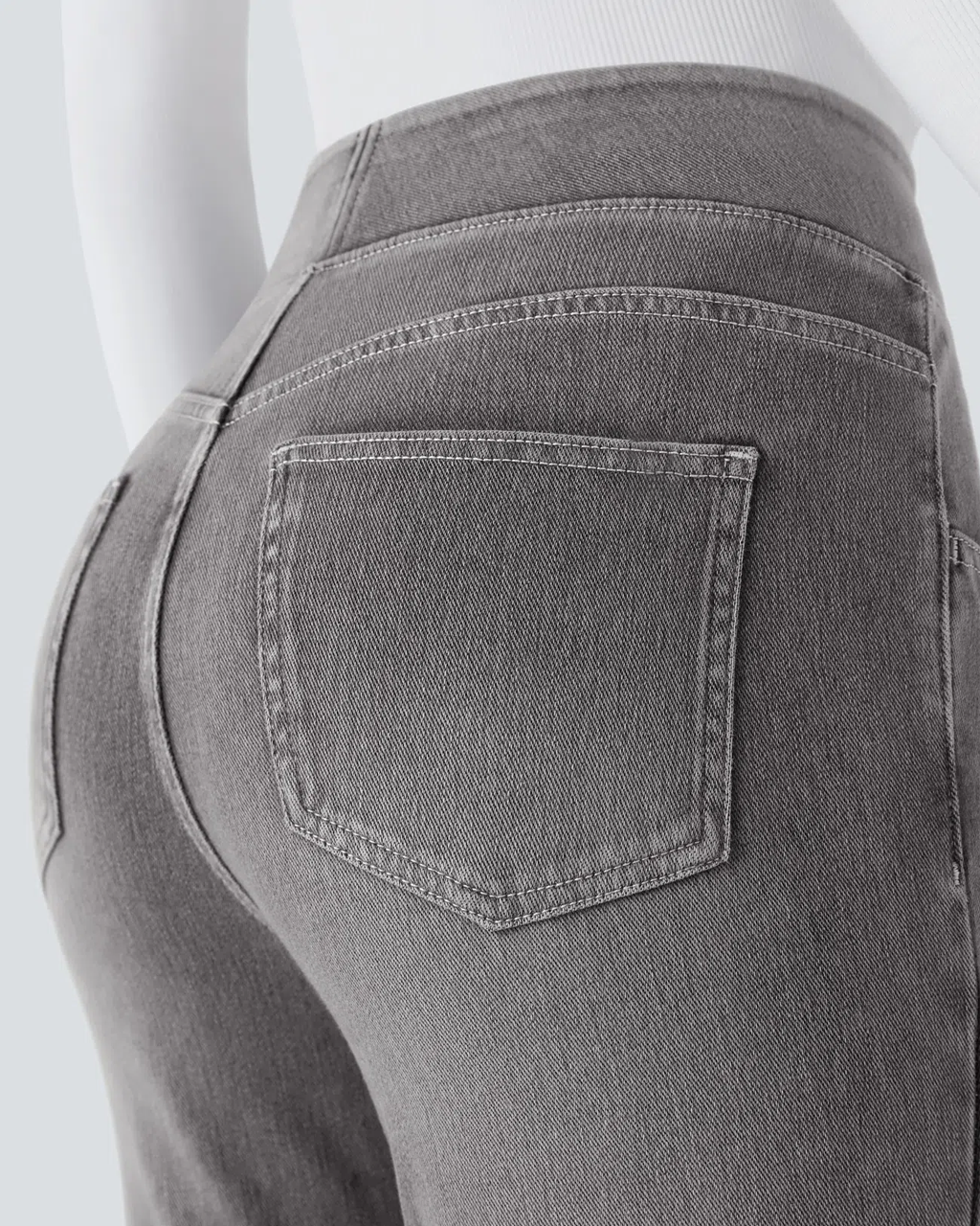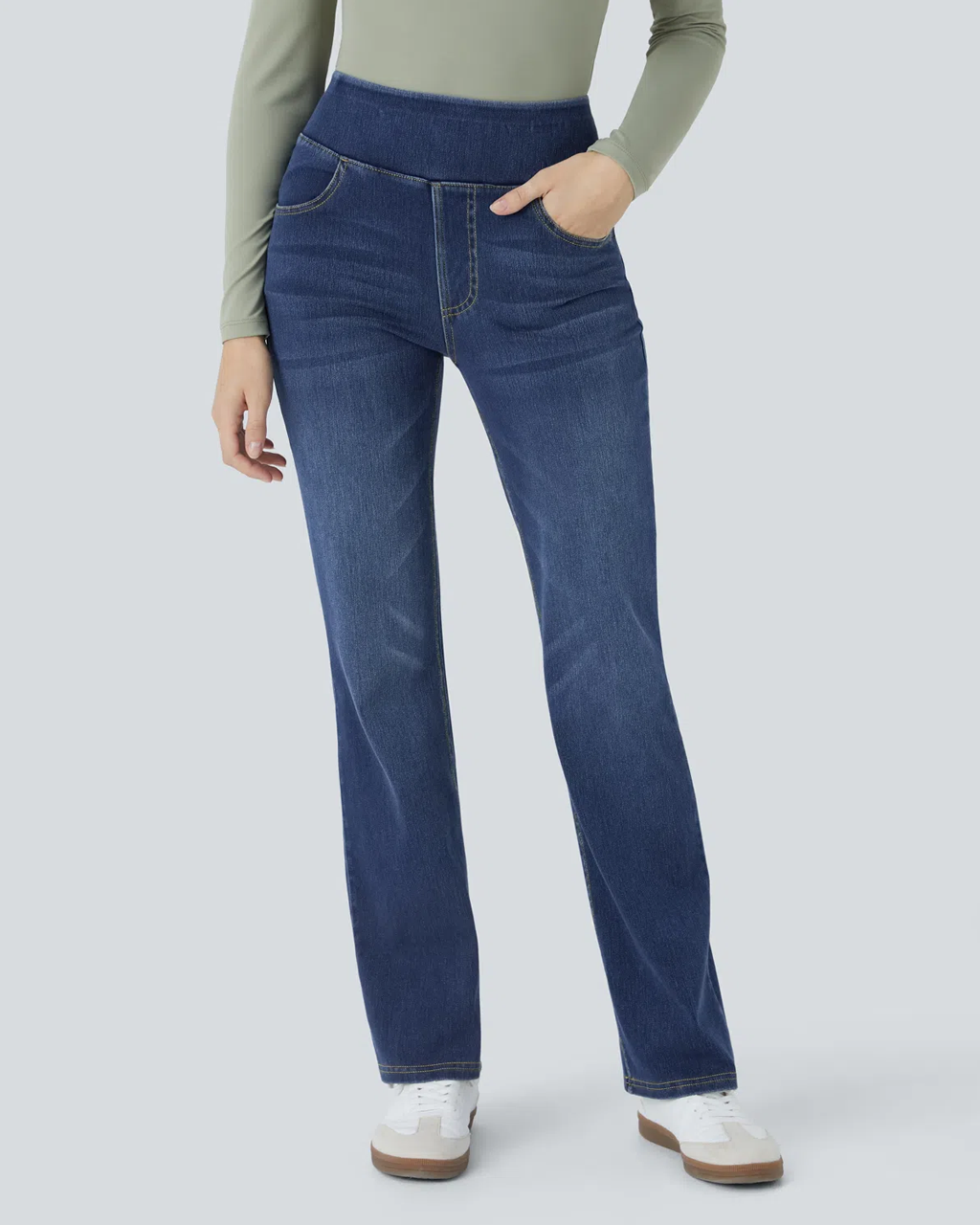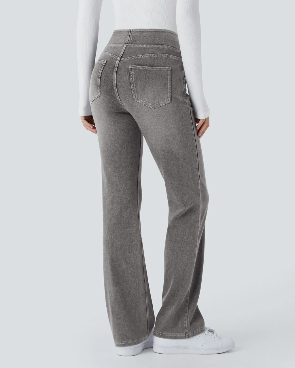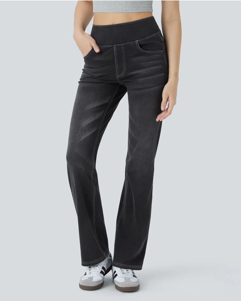 High Waisted Stretch Pockets Washed Casual Bootcut
