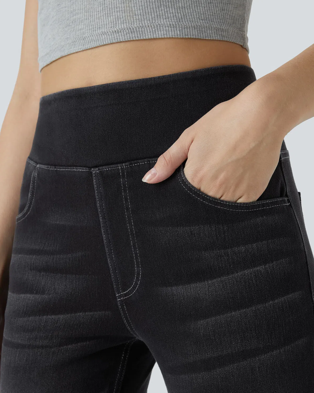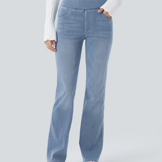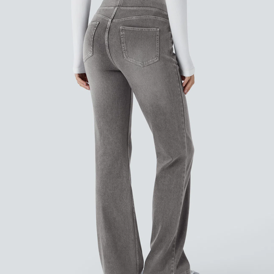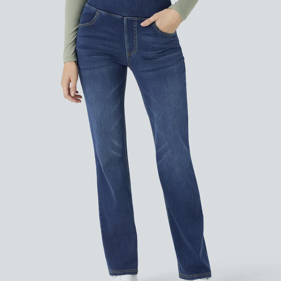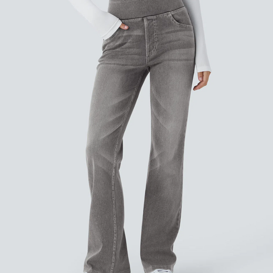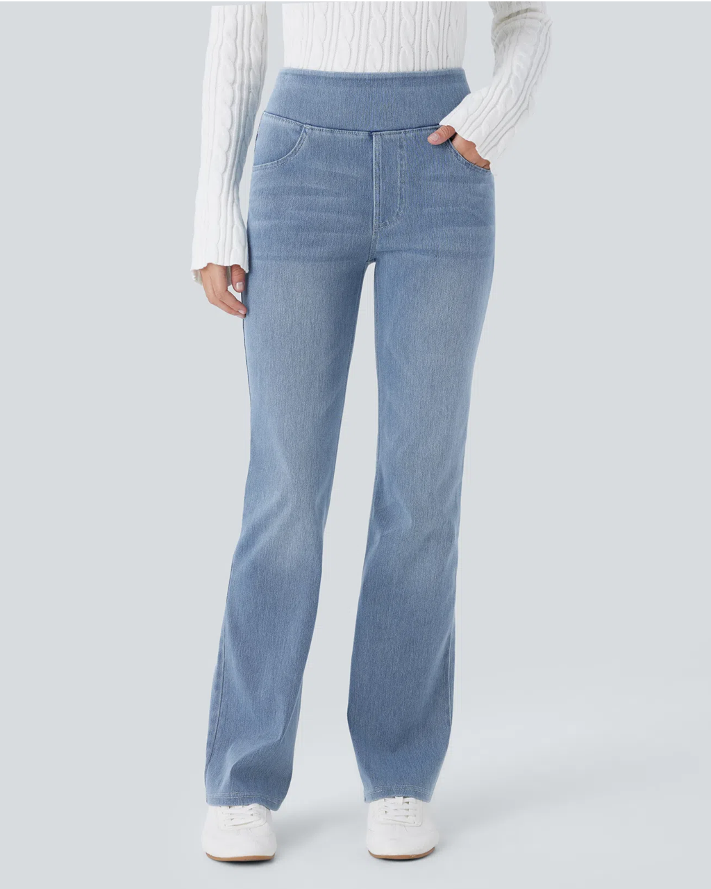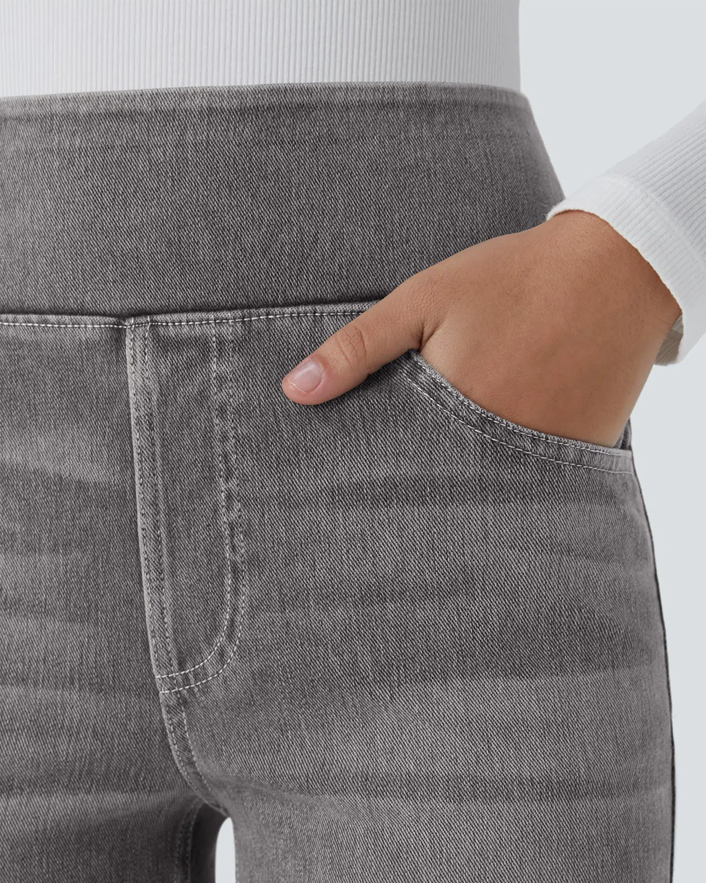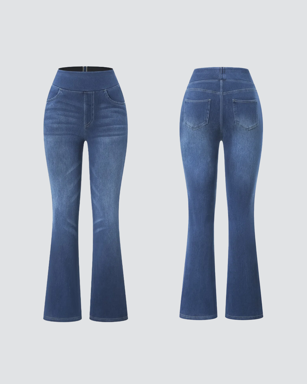 High Waisted Stretch Pockets Washed Casual Bootcut
