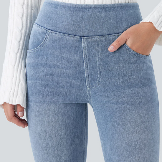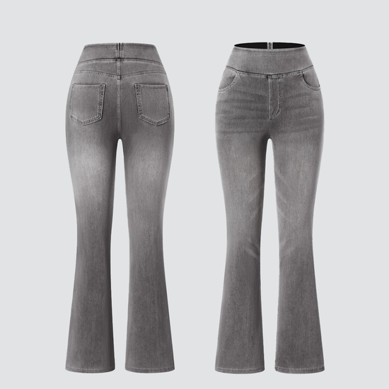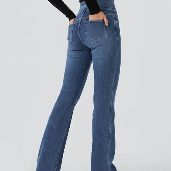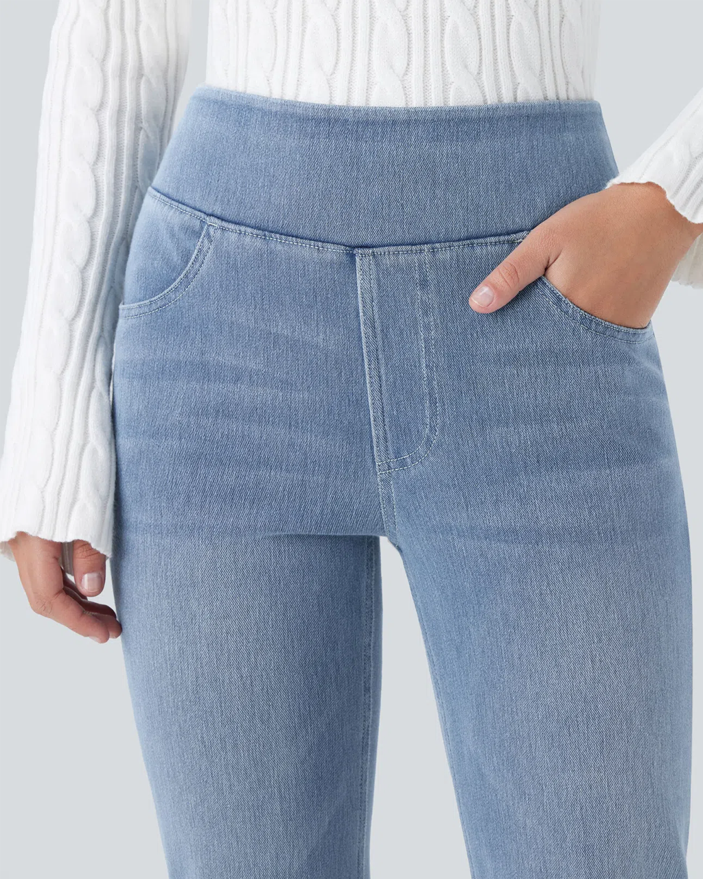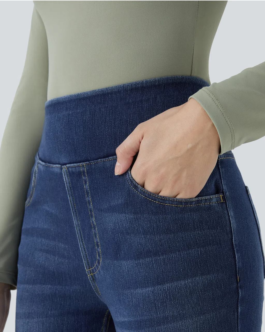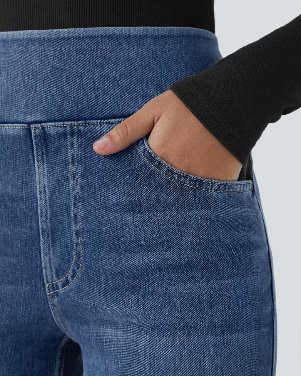 High Waisted Stretch Pockets Washed Casual Bootcut