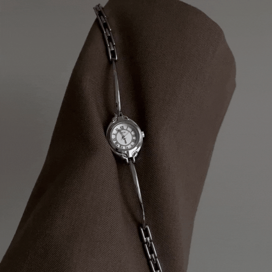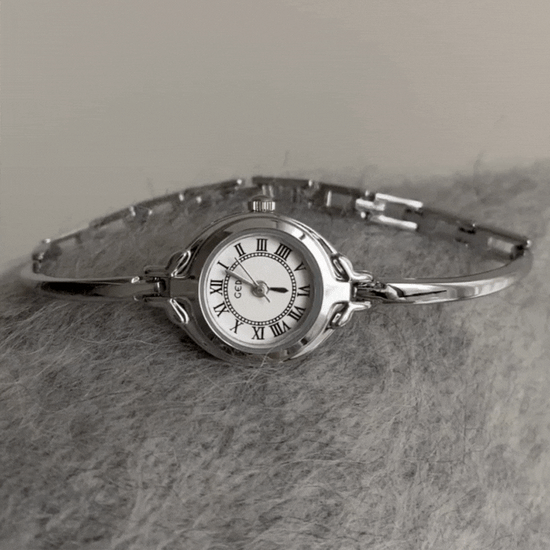 Αυτό το γυναικείο ρολόι quartz διαθέτει... μικρό λευκό στρογγυλό καντράν τοποθετημένο μέσα σε ένα κομψό ασημένιο βραχιόλι σε στυλ βραχιόλι, δημιουργώντας την τέλεια ισορροπία μεταξύ ενός ρολογιού και ενός λεπτεπίλεπτου αξεσουάρ. Το λεπτό προφίλ και ο σχεδιασμός εμπνευσμένος από κοσμήματα το καθιστούν ιδανική επιλογή για κομψές εμφανίσεις σε layer ή ατομικές εμφανίσεις.