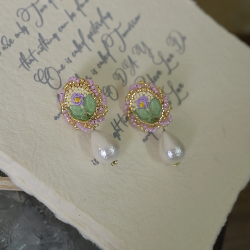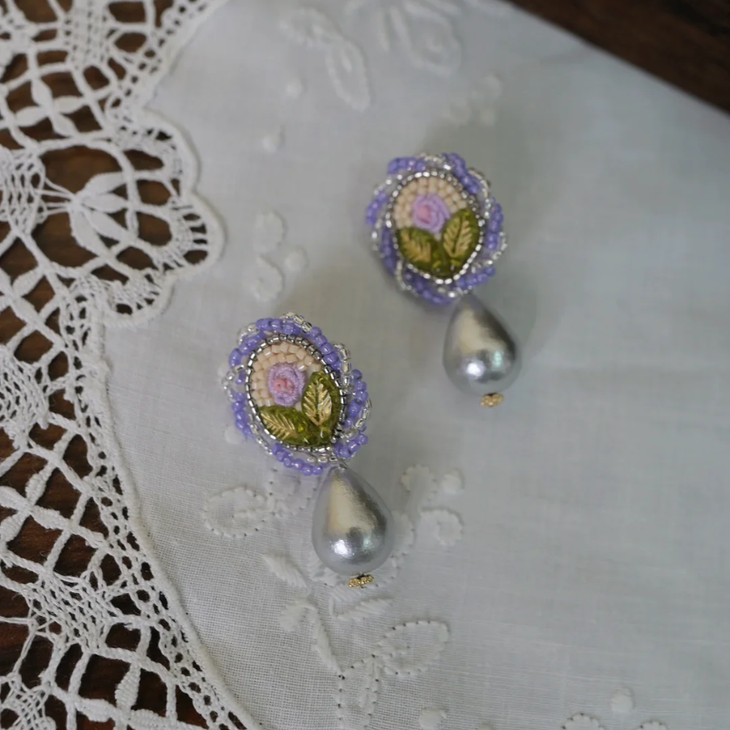 These hand-embroidered rose earrings blend artistry and emotion, bringing a touch of vintage poetry to your everyday look.
