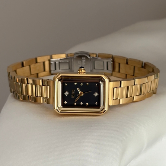 Powered by reliable quartz movement, it offers precise timekeeping with minimal care, while slim gold hands and subtle markers provide clear readability. Designed for resilience, the adjustable bracelet is scratch-resistant and water-resistant. Effortlessly transitioning from boardroom meetings to evening events, it serves as both a reliable accessory and a polished style statement—ideal for career milestones or as a refined personal upgrade.