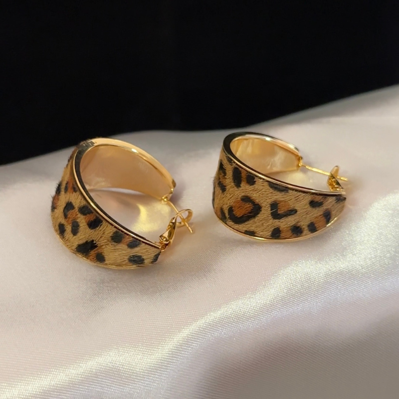 Vintage Leopard Print Geometric Circle Ear Cuff - Fashion Niche Design
