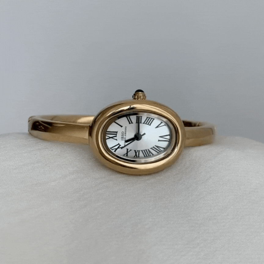 Este elegante reloj de cuarzo cuenta con una Esfera blanca ovalada única inspirada en una bañera situado en un Diseño elegante estilo brazalete doradoElegante con un toque diferente, se combina Curvas divertidas y sofisticación moderna, perfecto para añadir personalidad a looks refinados del día a día.