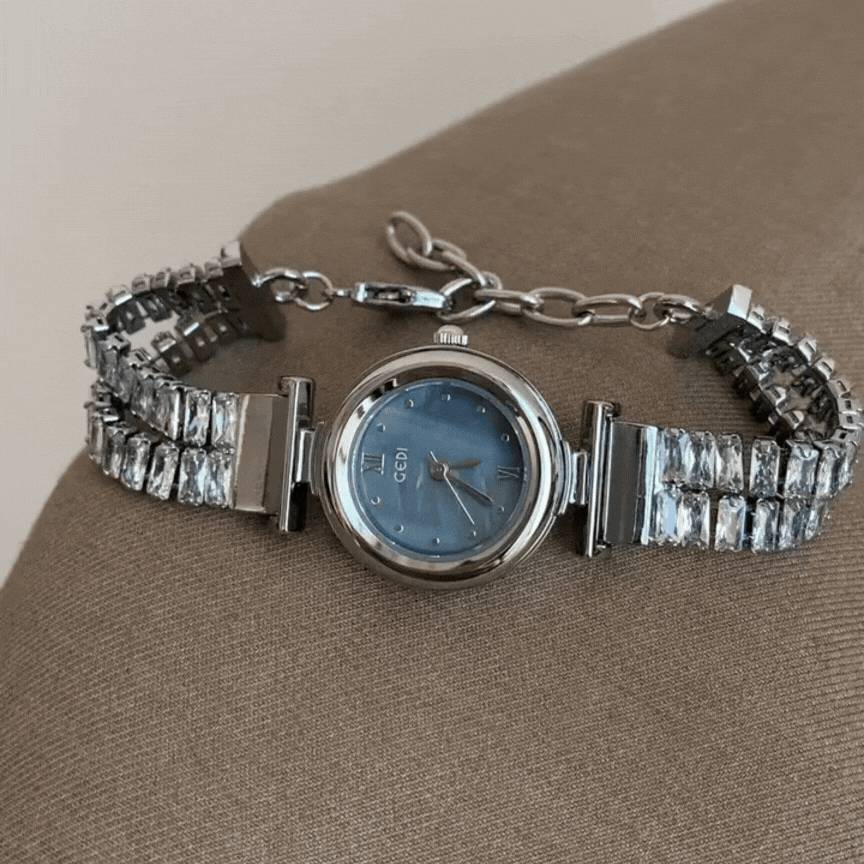 Añade un toque de glamour a tu muñeca con este Reloj de cuarzo para mujer con pulsera de cristal, caja plateada y esfera azulCon una impresionante esfera azul y un brillante brazalete con cristales incrustados, este reloj combina a la perfección elegancia y funcionalidad. La caja plateada y la pequeña esfera redonda crean un diseño atemporal, mientras que el brazalete de cristales le da un toque lujoso y femenino. Impulsado por un preciso movimiento de cuarzo, este reloj garantiza una hora exacta y es perfecto tanto para el día a día como para ocasiones especiales. Ya sea para un evento o para añadir un toque de estilo a tu look casual, este reloj es un accesorio versátil y llamativo.