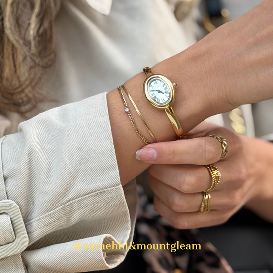Curva Aura - Reloj de brazalete de oro con dial ovalado esculpido
