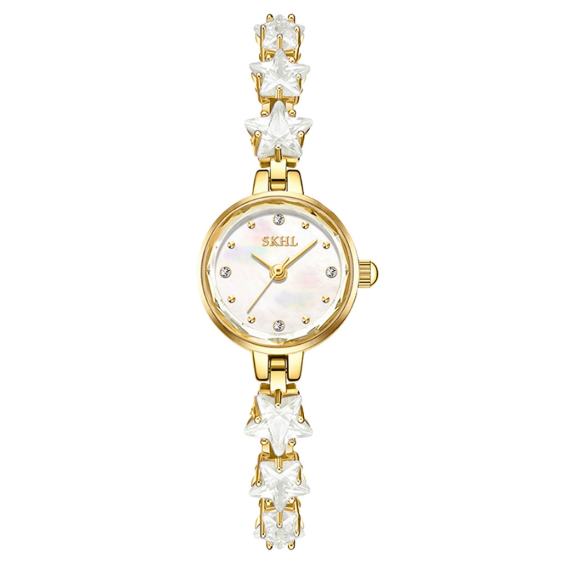 Gracia iluminada por las estrellas-Reloj de pulsera de oro femenino con cadena cortada en cristal