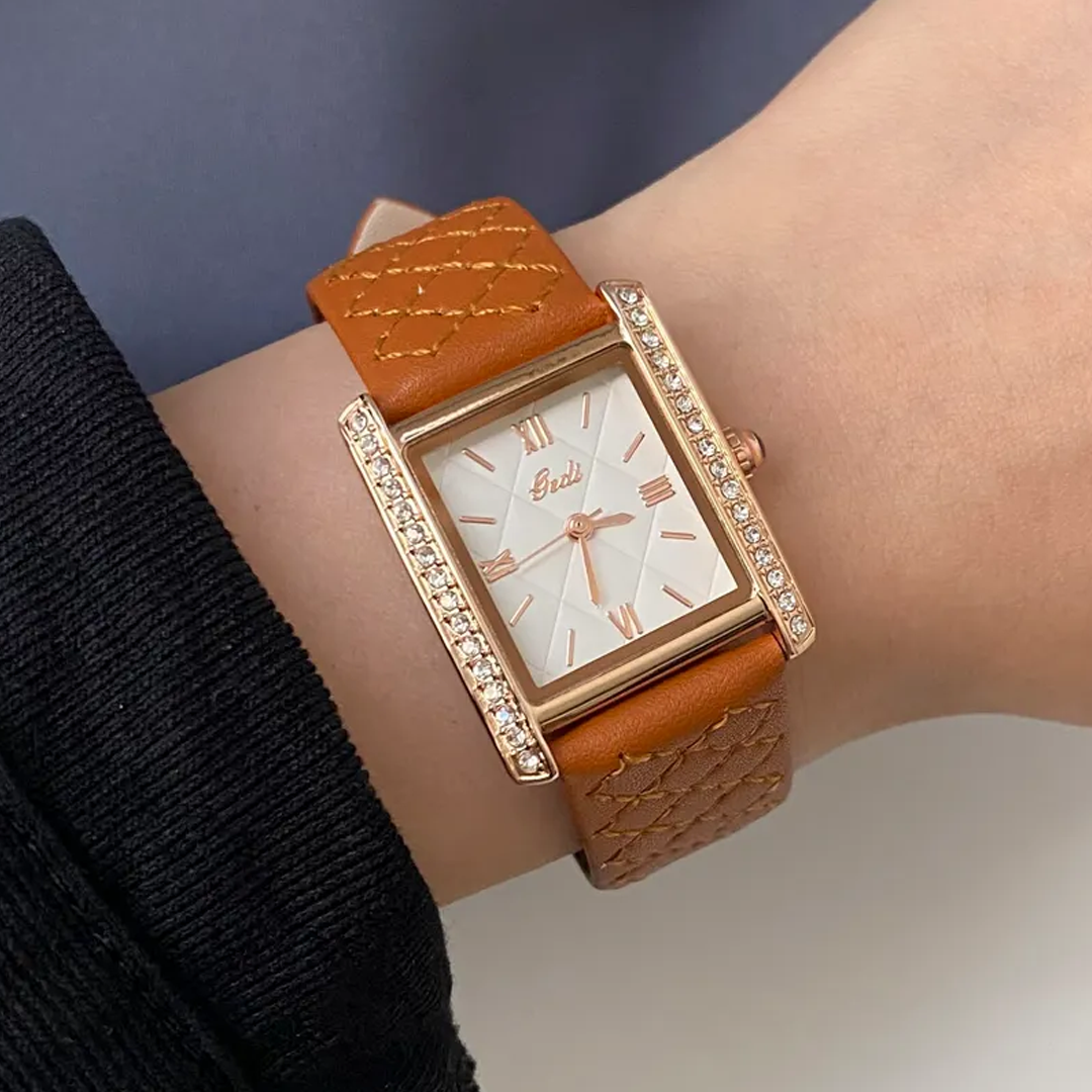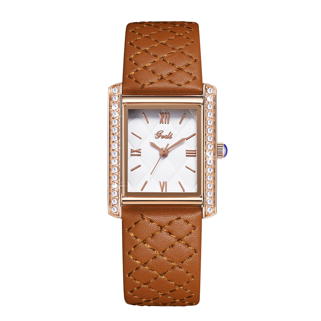 Este reloj de cuarzo para mujer combina detalle clásico de alta costura con elegancia cotidiana. Cuenta con un Esfera blanca suave enmarcada en una caja en tono oro rosa, complementado con un Correa de piel auténtica marrón con icónicas costuras acolchadas.—un guiño a la herencia de la alta moda.