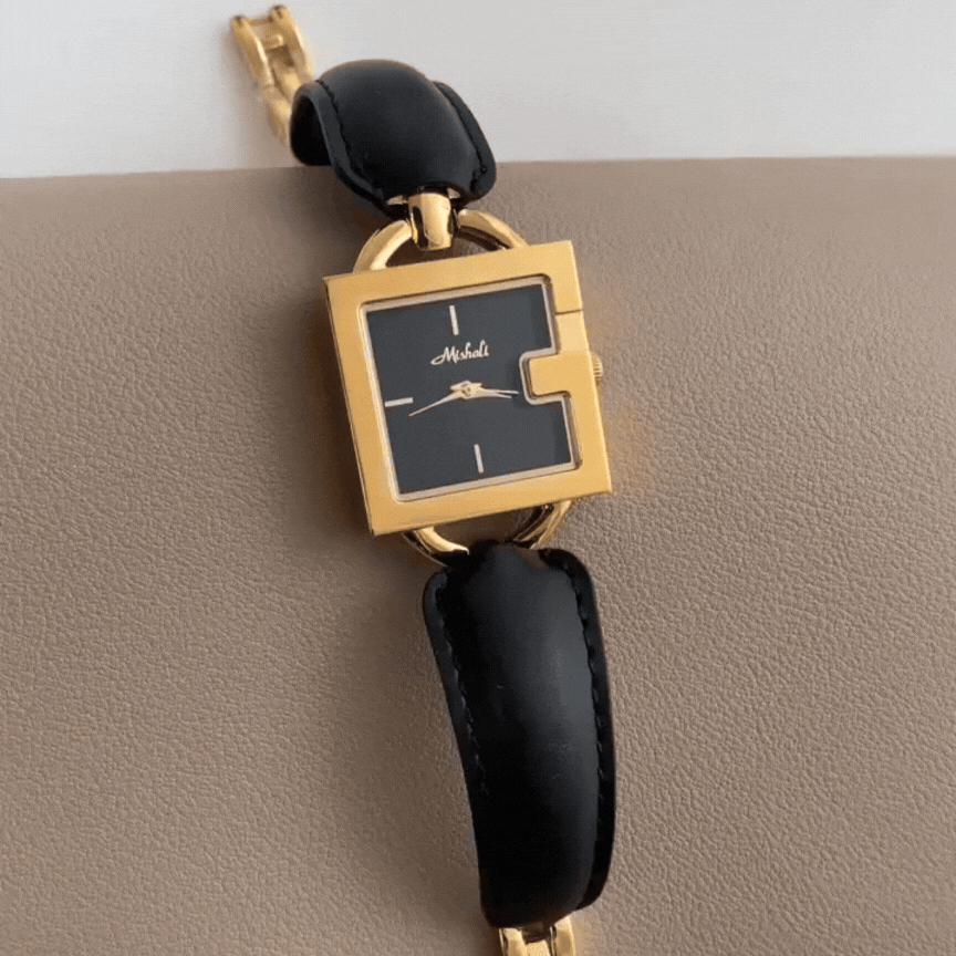 Presentando el Gracia de cuero negroUna refinada combinación de sofisticación y elegancia atemporal. Con una elegante caja cuadrada dorada y una lujosa correa de cuero negro diseñada como brazalete, este reloj irradia un aire de lujo discreto. Su diseño minimalista pero impactante lo convierte en el accesorio perfecto para quienes buscan un equilibrio entre estilo moderno y encanto clásico. Ideal tanto para entornos profesionales como informales, este reloj de cuarzo es una pieza clave para la persona más exigente.