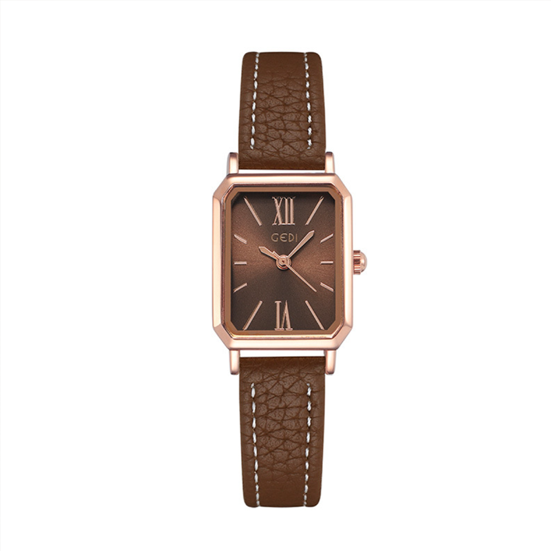Presentamos el reloj Chestnut Elegance, una obra maestra de lujo refinado y calidez. Con una correa de cuero marrón intenso, una caja rectangular en tono oro rosa y una esfera minimalista en tonos chocolate, este reloj irradia sofisticación atemporal, perfecto para cualquier ocasión.