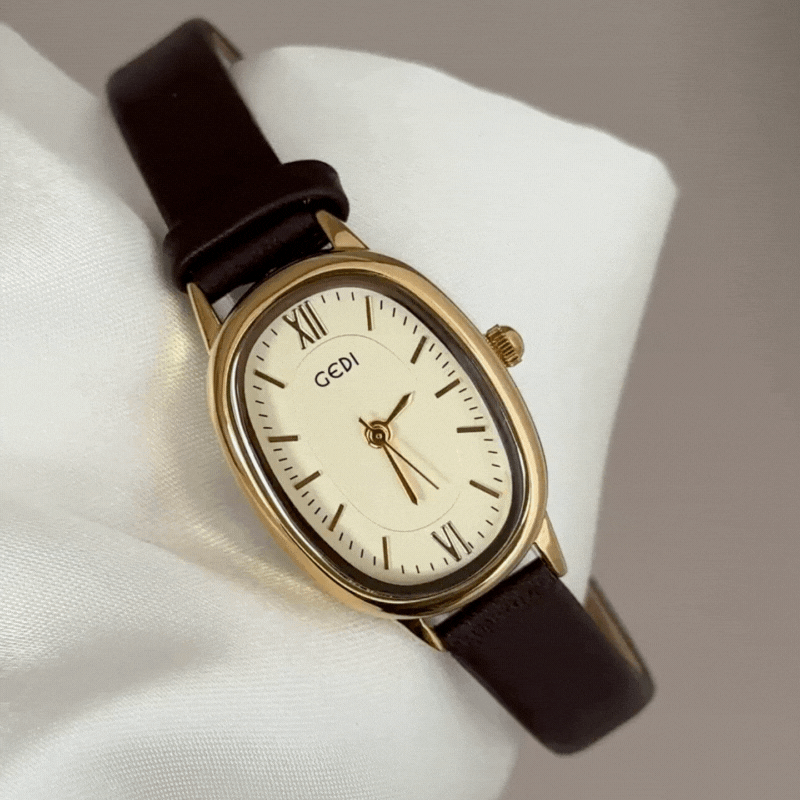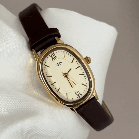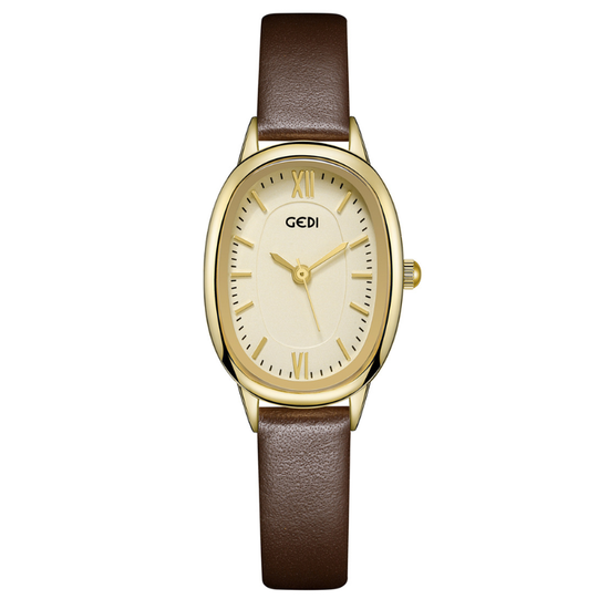 Capturing timeless elegance with heritage-inspired aesthetics and modern versatility. Features a warm gold oval sunburst dial housed in a polished gold-tone case, paired with a rich brown premium vegan leather strap for a sophisticated look. Reliable quartz movement ensures precise timekeeping. Adjustable, scratch-resistant, and water-resistant, it transitions seamlessly from day to evening—serving as both a functional accessory and a refined style accent, ideal as a thoughtful gift or personal upgrade blending nostalgic charm with contemporary practicality.