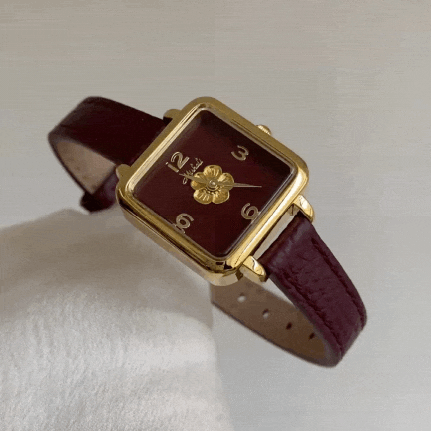 Presentamos el reloj Crimson Grace: una fusión perfecta de encanto vintage y elegancia moderna. Una correa de piel color rojo camelia se complementa con una refinada caja vintage, mientras que la esfera rojo intenso con números romanos y agujas doradas irradia una belleza atemporal.