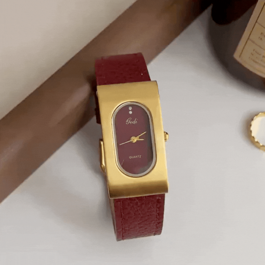 Reloj carmesí de lujo: reloj rectangular de cuero rojo y acero ancona