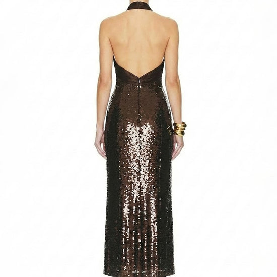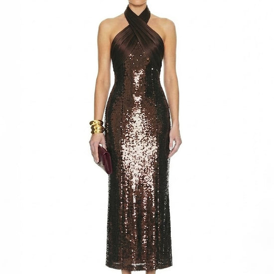 Criss-Cross Halter Sequin Shimmering Backless Evening Maxi Dress