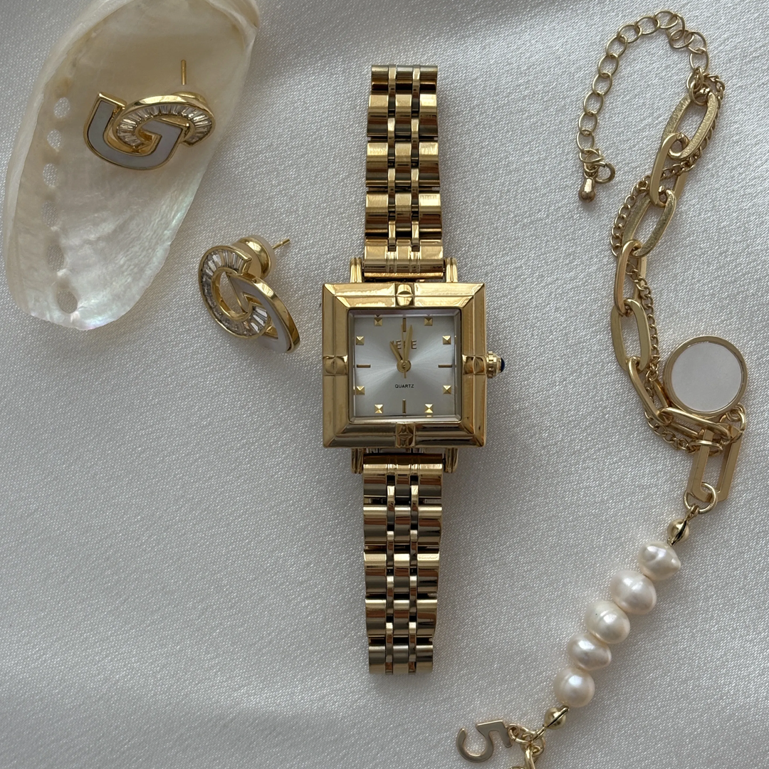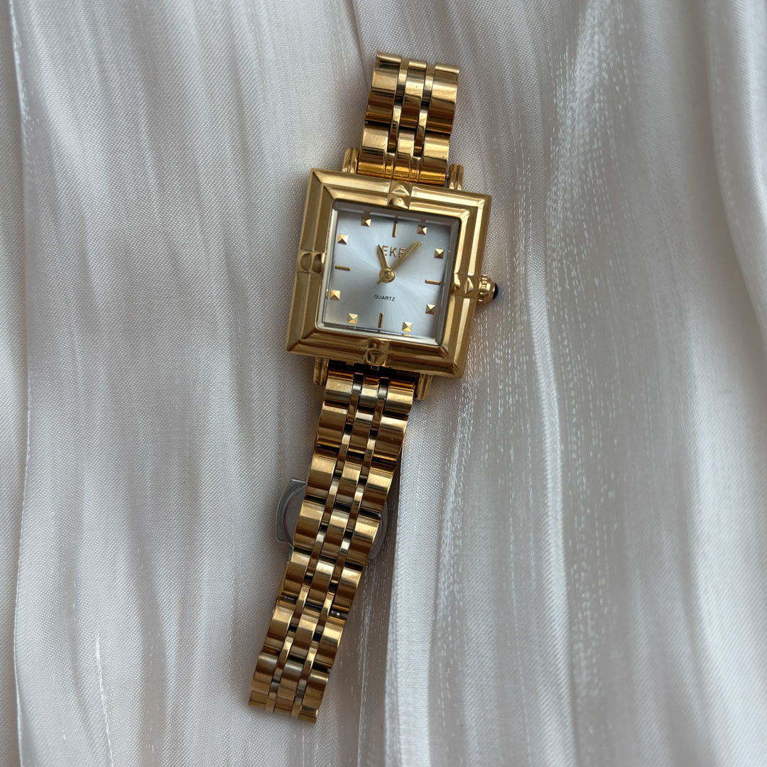 Este reloj de cuarzo para mujer presenta una esfera cuadrada blanca impecable con un elegante brazalete dorado, que combina un diseño clásico con un estilo moderno. Minimalista pero refinado, es el compañero perfecto para los desplazamientos diarios y un estilo de vida elegante.